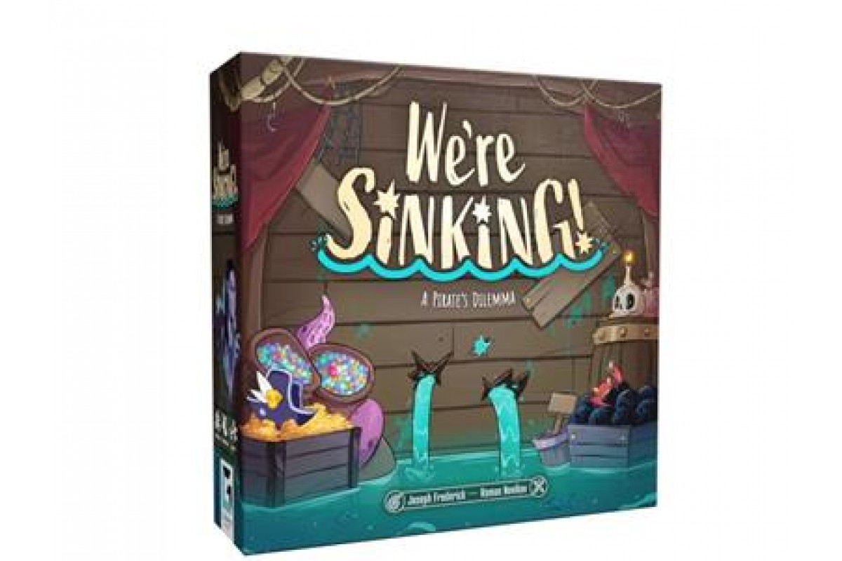 In We're Sinking!, a 3-6 player, secret action-taking survival game, players take on the role of pirates on a ship under siege. As the ship takes damage, the crew must work together to repair the ship and defeat one of the threats — kraken, skeleton pirates, megalodon, or sirens — while keeping the ship from sinking.