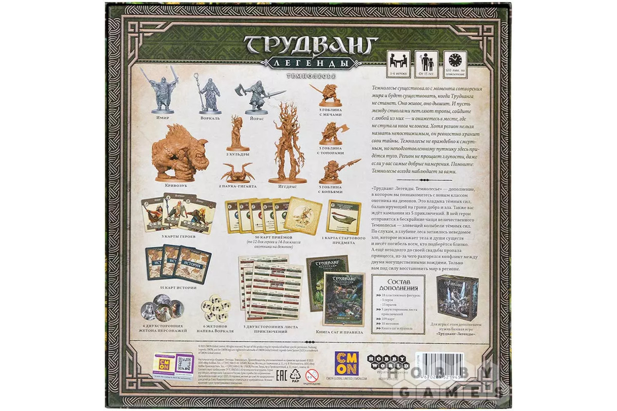 Отправьтесь в кооперативное приключение в настольной игре "Трудванг: Легенды"! Пришло время стать отважными героями, что борются со злом, и оставить собственный след в летописях этого мира. Откройте книгу саг, чтобы начать вашу историю! Как вы поступите в случае угрозы: сразу пойдёте в атаку или попробуете поговорить? Спланируете скрытую атаку или обрушите на врага мощь всего своего магического арсенала? Какие бы решения вы ни приняли, они повлекут за собой последствия, которые обязательно отразятся не только на окружающем вас мире, но и на его обитателях. У вас впереди 20 нелинейных приключений, 6 совершенно уникальных классов героев и огромный мир сказаний, мифов и легенд. Станьте их частью и напишите собственную сагу в мире Трудванга!
