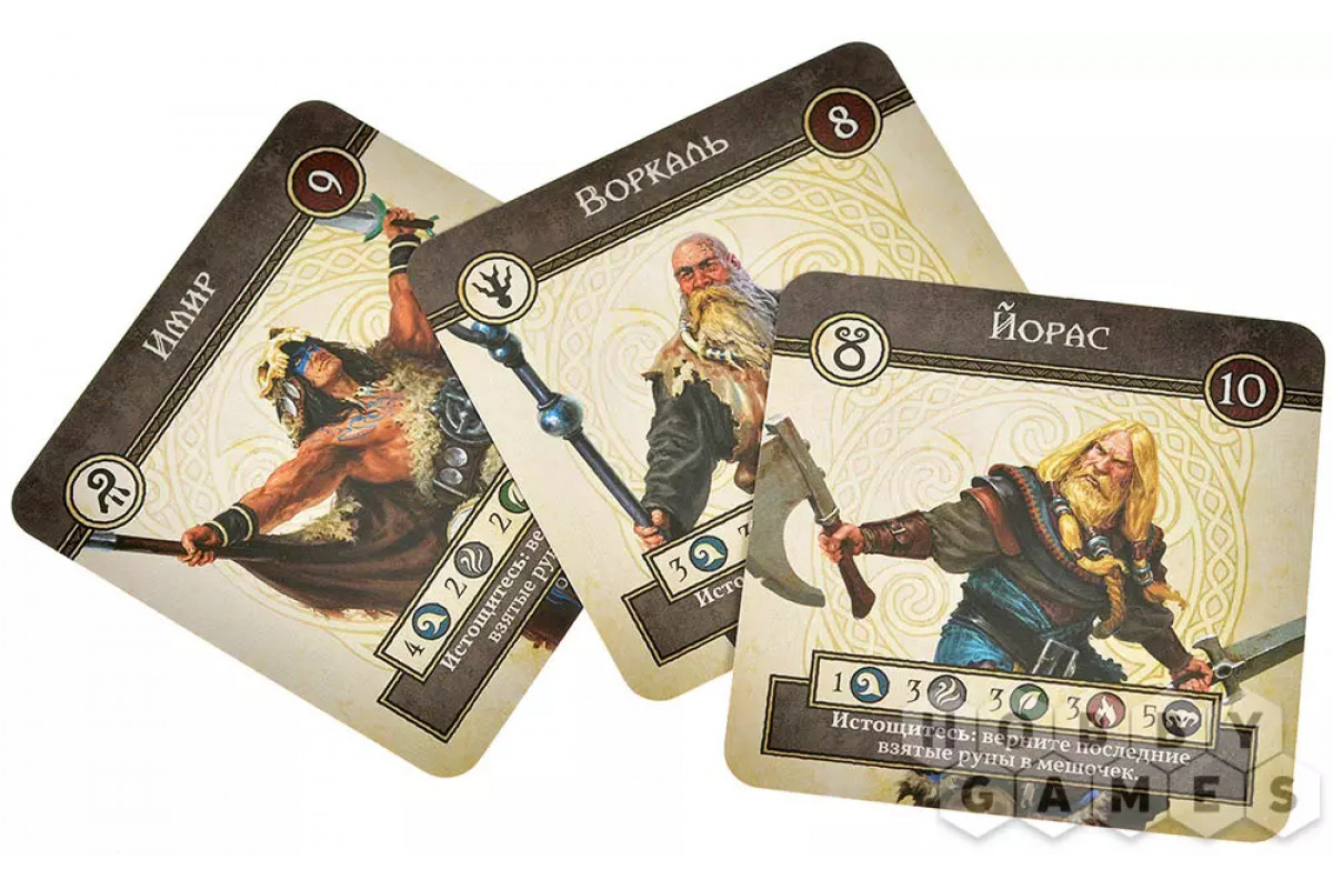 В первую фазу каждый герой может отправиться в соседние земли, чтобы исследовать их. Тут надо быть осторожным: если в покидаемом регионе есть враги, не относящиеся к ориентиру, они наносят герою по одному урону. Куда отправиться? Это вам будет подсказывать книга саг. А каким маршрутом добираться до конечной точки, решать уже вам: пойдёте ли вы из Эйдленда в Дикоземье напрямик сквозь Ледяную гряду, или решите обогнуть горы на корабле через Мрачное море?