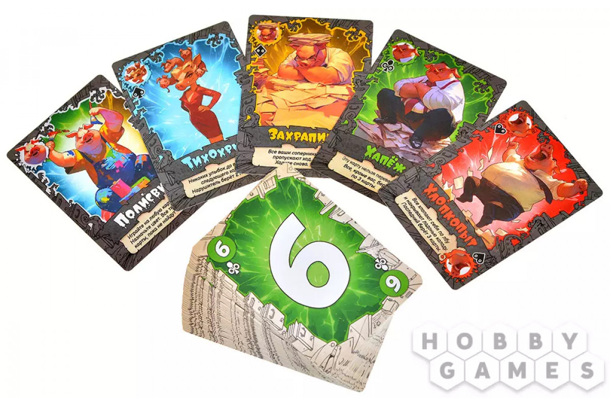 В мире свинов наступил настоящий переполох! Колода карт обрела двойную жизнь, и теперь каждый игрок в любой момент может перевернуть игру вместе с картами. То, что казалось верной победой, оборачивается весёлым разгромом, а коварные планы соперников рассыпаются благодаря ловкому движению вашей руки.