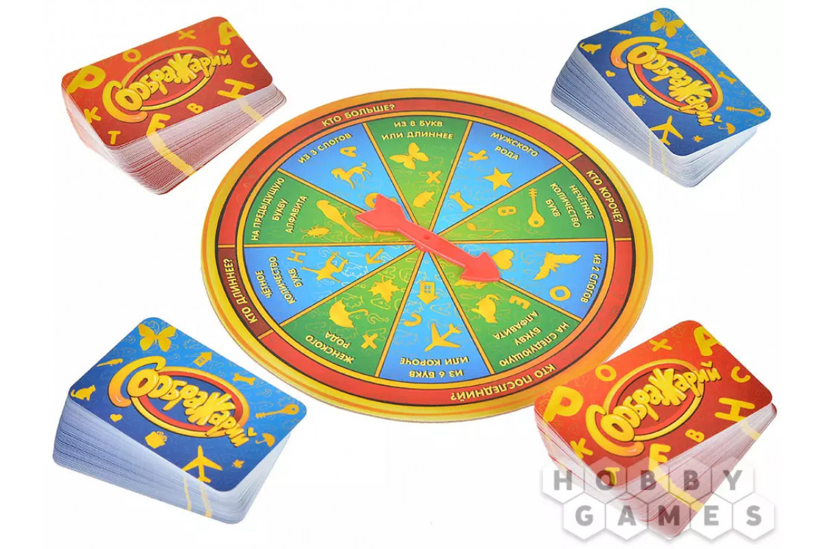 В этом издании вас ждёт уникальный игровой элемент – специальная вертушка, которая вносит разнообразие и добавляет особые условия для ответов. Выбирайте, с какой колодой играть: классической – с буквами, или более креативной – с картинками, которые нужно определить самостоятельно. Вас ждут сотни карт из хитов серии: "Соображарий", "Улётная вечеринка", "Картинки", "Турбо", "Каникулы", а также эксклюзивные карты из других тематических выпусков и множество совершенно новых заданий!