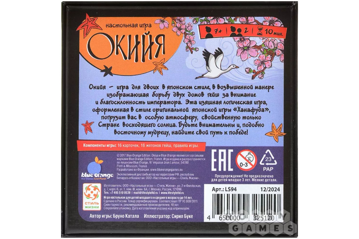 "Окийя" – элегантная дуэльная настольная игра в японском сеттинге, где две гейши соперничают за расположение императора. Игрокам предстоит проявить стратегическое мышление и внимательность, расставляя свои жетоны в саду. Компоненты и их дизайн вдохновлены традиционной японской игрой, которая называется "Ханафуда" – в ней такие же "цветочные" карты. Простые правила делают игру доступной даже для новичков, но за их лёгкостью скрываются тонкие тактические возможности. Игра подойдёт для тех, кто ценит изящный минимализм, логические вызовы и атмосферу японских традиций.
