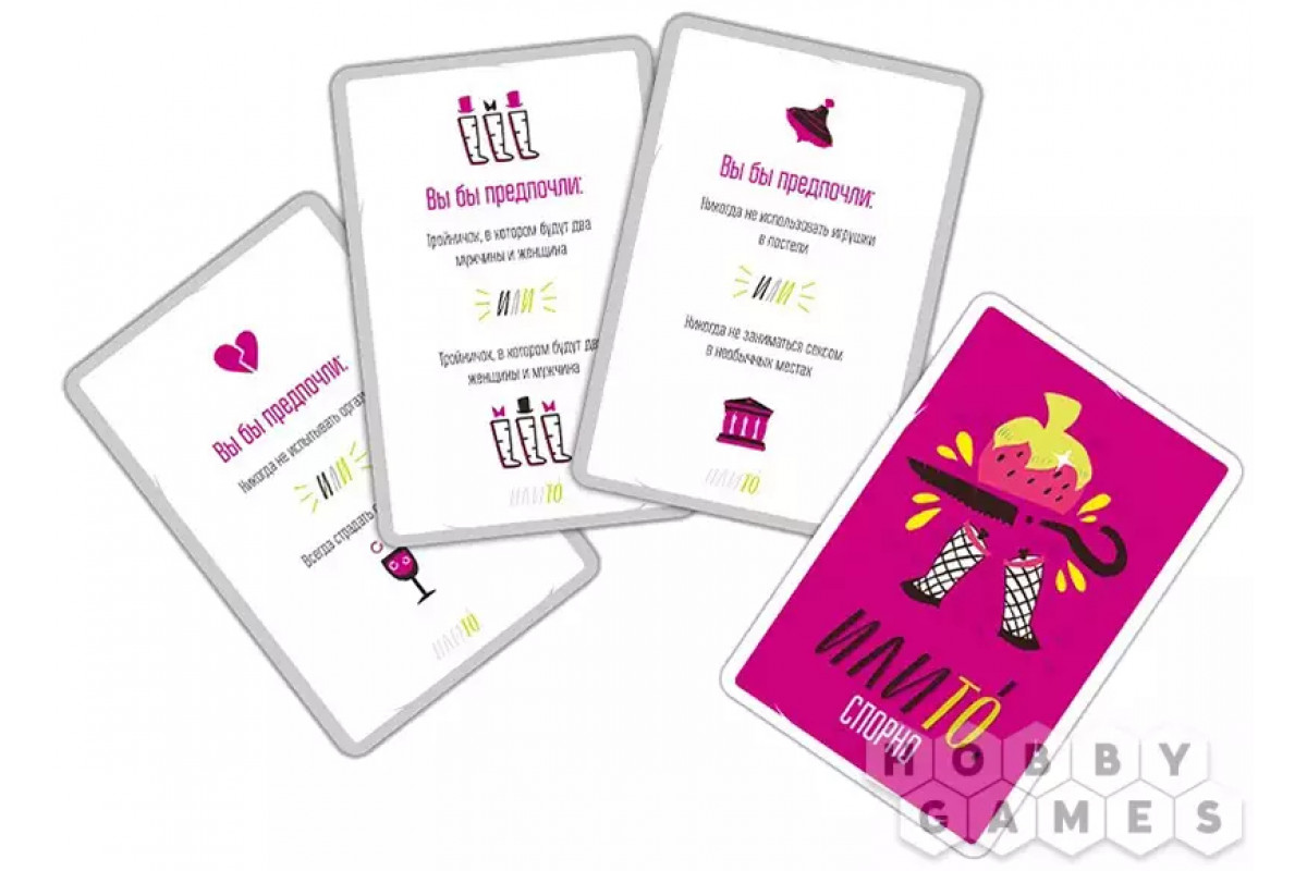 Как это всё устроено? Да очень просто: первый игрок тянет карту и зачитывает ну очень неудобный вопрос с двумя вариантами выбора. Остальные участники по очереди выбирают меньшее из зол (конечно же, на их взгляд) и аргументируют свой ответ. Важно быть максимально убедительным, ведь задача остальных склонить на свою сторону ведущего: после всех ответов он озвучивает свой выбор и указывает игрока, чьи аргументы были для него более вескими – он получает карточку вопроса и победное очко! Ну а затем ведущий меняется, а жаркие споры продолжаются!