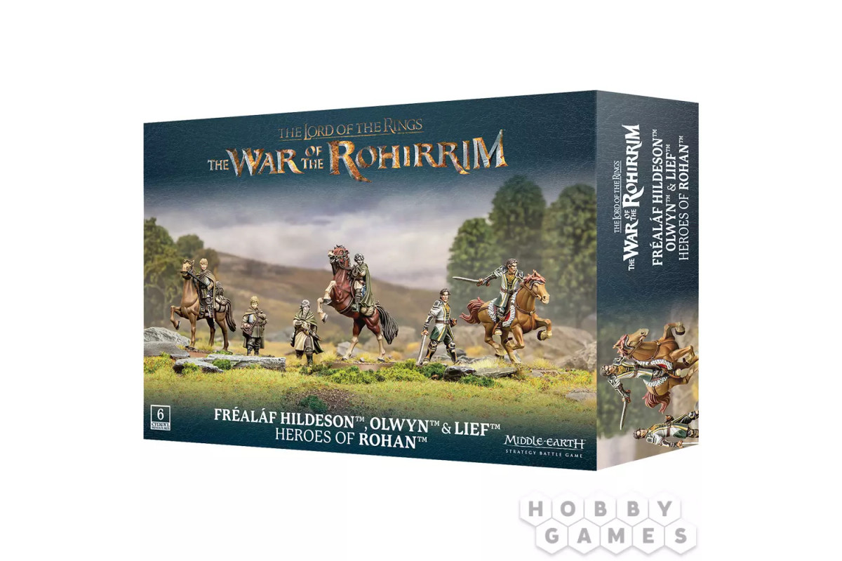 Набор позволяет собрать трёх выдающихся воинов Рохана: искусную щитоносицу Олвин, преданного пажа Лифа и непобедимого Первого маршала Ридермарка, Фреалафа. Все они готовы пополнить ваши армии в стратегической настольной игре по Средиземью.