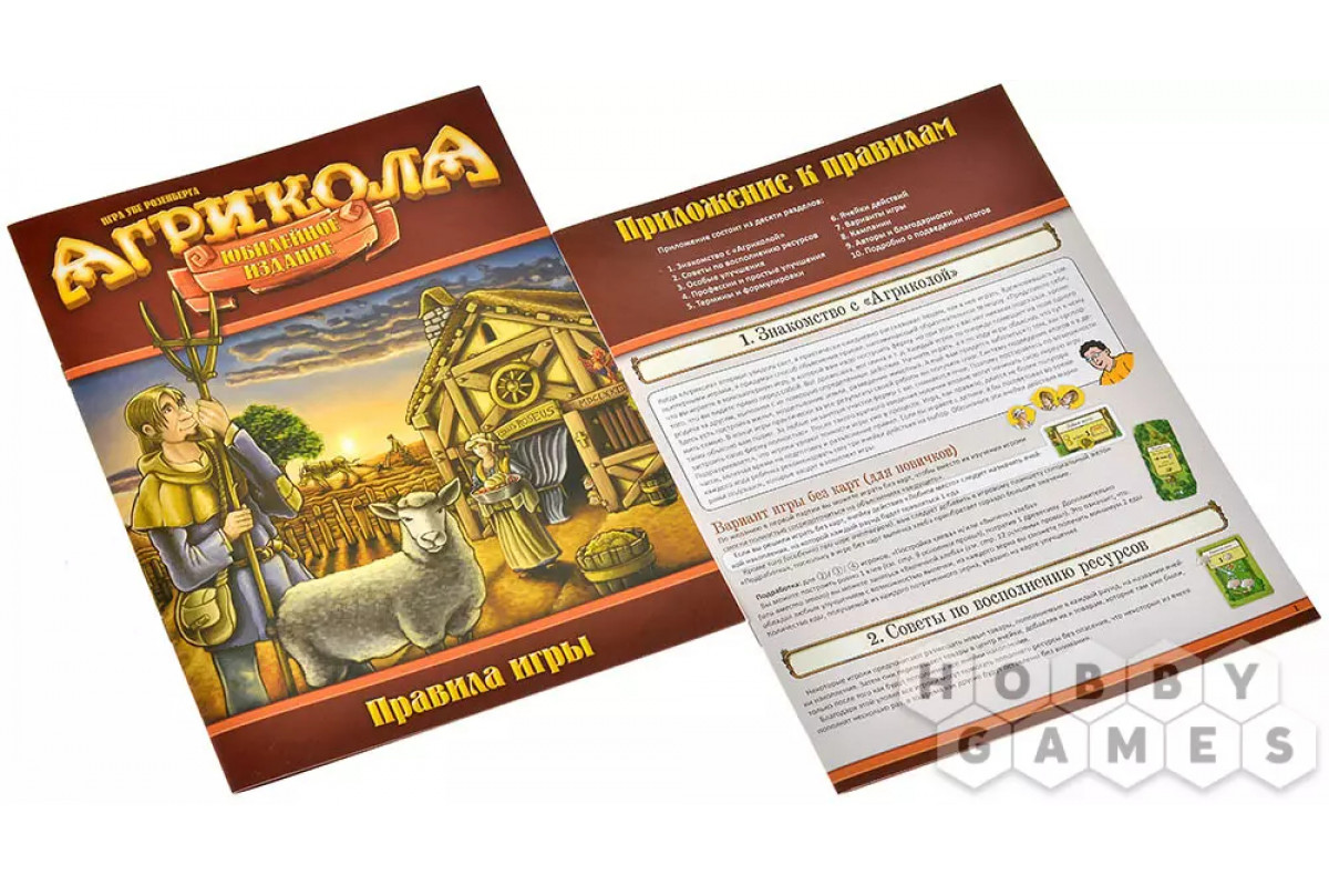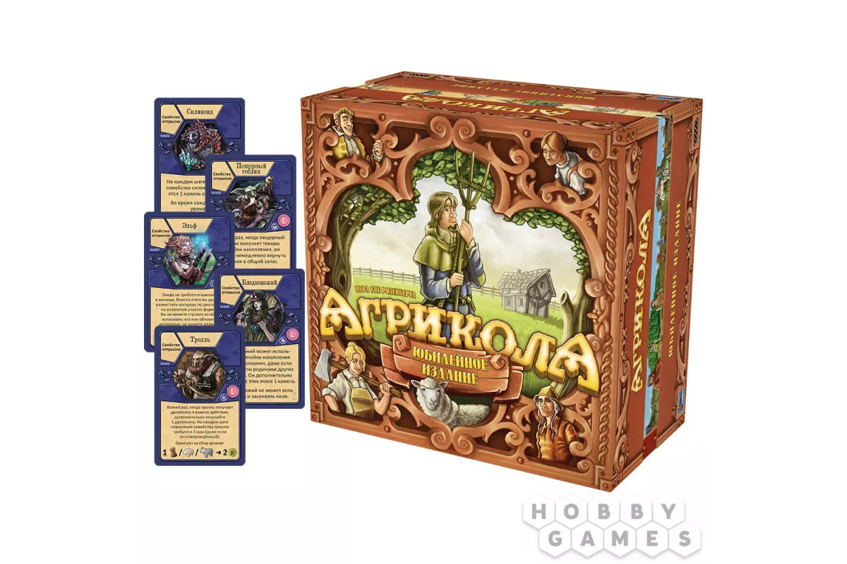 "Агрикола. Юбилейное издание" – это знакомая и любимая классика, только в более новом и улучшенном исполнении! Вам по-прежнему предстоит развивать своё хозяйство: расширять жилище, разводить животных, выращивать овощи и растить семью, чтобы к финалу стать самой зажиточной династией.