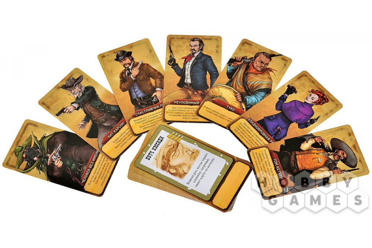 Все игроки оказываются на настоящем Диком Западе и случайным образом получают различные роли: вы можете стать Шерифом, его Помощником, Бандитом или даже Отступником. Затем идёт выбор персонажей, каждый из которых уникален своими способностями. Вся соль игры в том, что игрокам известен лишь Шериф, а вот остальные роли скрыты и остаётся только догадываться об истинных намерениях участников! Накаляет обстановку также и то, что у каждой роли свои условия победы: Шерифу нужно подстрелить всех бандитов и Отступника; бандитам – шерифа, но и друг друга они пострелять тоже не против; а Отступнику нужно просто остаться последним в живых. Различные действия совершаются за счёт простого розыгрыша карт: начиная с глотка пива для восстановления здоровья и заканчивая вызовом игрока на дуэль.