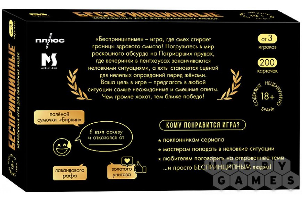Игра создана по мотивам одноимённого сериала "Беспринципные", так что поклонники без проблем узнают любимые моменты. Но даже если вы не в курсе происходящего на экране – правила освоите за минуту, а смеяться начнёте сразу.