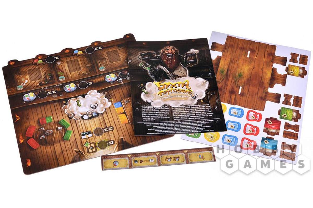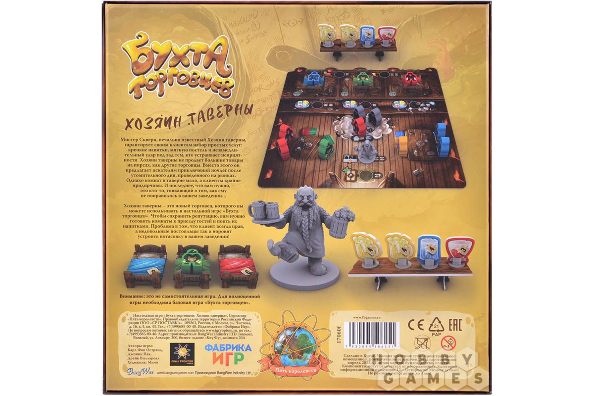 "Хозяин таверны" – это дополнение для настольной игры "Бухта торговцев", с помощью которого вы сможете перевоплотиться в мистера Скверна – очень известного и уважаемого хозяина таверны во всей бухте. Вам предстоит давать людям самые обычные, но очень необходимые вещи: кто-то уже несколько недель не лежал на мягкой постели, кто-то целый месяц питался одними сушёными грибами, а кому-то просто необходим крепкий напиток! И всё это у вас есть. В отличие от других торговцев, вы не будете стоять на пирсе и зазывать клиентов: вы будете ждать их уже после закрытия рынка. Чтобы удовлетворить потребности всех клиентов, вам будет необходимо правильно подготовить места для посетителей, чтобы привлечь постоянно растущий доход. А ещё нужно следить за порядком, чтобы избежать потасовки между гостями, иначе все ваши труды по зарабатыванию репутации лучшей таверны пойдут насмарку.