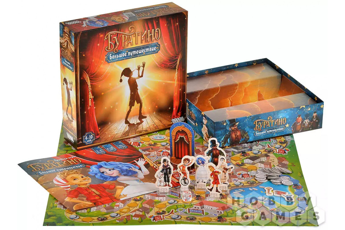Каждый ход – это весёлое испытание, где только от вашего выбора зависит, кто первым доберётся до заветной цели! Игра продолжается до самого финала – пока один из участников или сам Карабас не займёт театральную сцену!