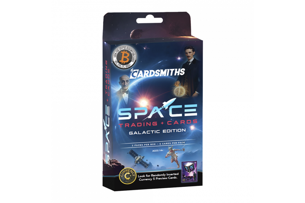 Randomly inserted in Galactic Edition packs are specially marked cards redeemable for various denominations of cryptocurrencies like Bitcoin, Ethereum, Litecoin, and Dogecoin.