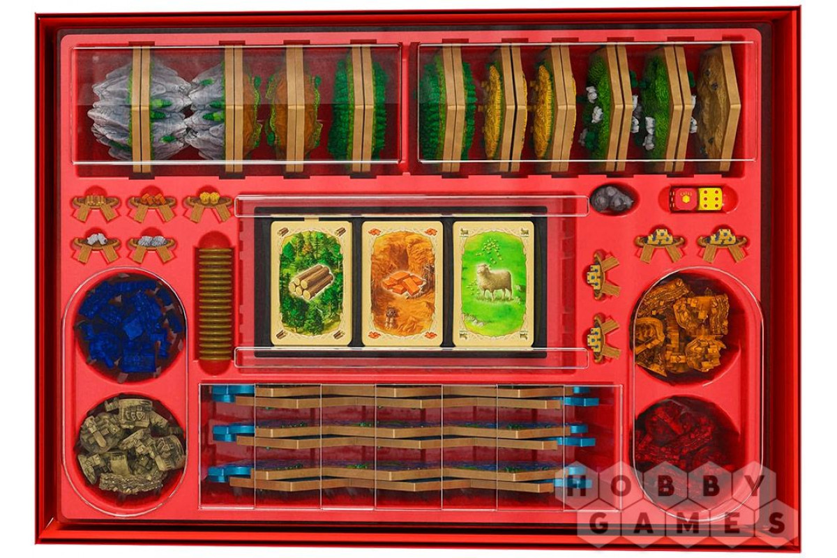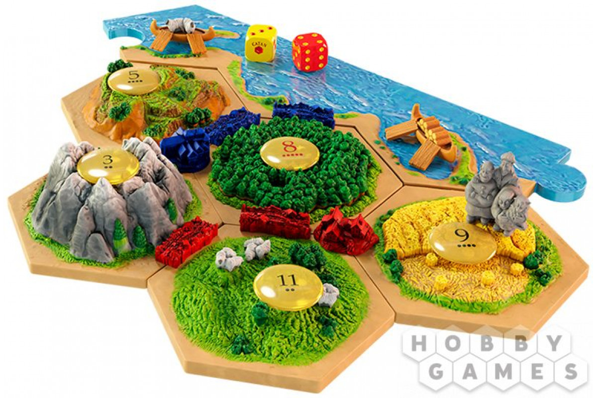 Долгожданное трёхмерное издание классической игры CATAN создано на основе рельефных тайлов, вручную смоделированных самим Клаусом Тойбером. Все элементы ландшафта аккуратно раскрашены вручную, а фигурки игроков детализированы и искусственно состарены, что придаёт им особый характер и ощущение глубокой истории.