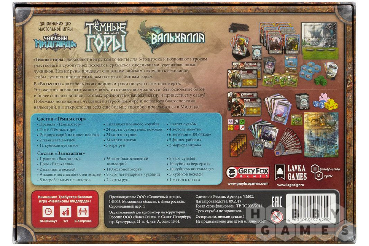 Для настоящего викинга нет ничего более желанного, чем слава, заработанная в вечной битве. Перед вами – комплект сразу из двух дополнений к настольной игре "Чемпионы Мидгарда", которые не только представят новые игровые механики, расширят возможности базовой игры и погрузят вас глубже в мир древней Скандинавии, но и добавят в процесс игры залы Вальхаллы. Именно здесь ваши братья по оружию, павшие в боях смертью храбрых, обретут второе дыхание и станут ценными соратниками в деле получения славы величайшего воина среди живущих.
