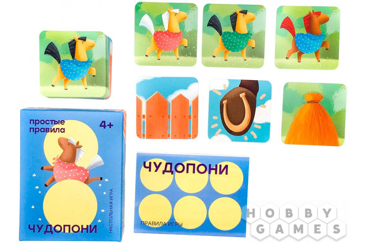 "Чудопони" – настольная игра для самых маленьких игроков, в которой малыши научатся действовать сообща, чтобы добиться общего результата. Ребятам нужно будет обсуждать свои решения и действия, анализировать карты друг друга, а также помогать остальным игрокам – всё для того, чтобы в итоге всем вместе прийти к заслуженной победе.