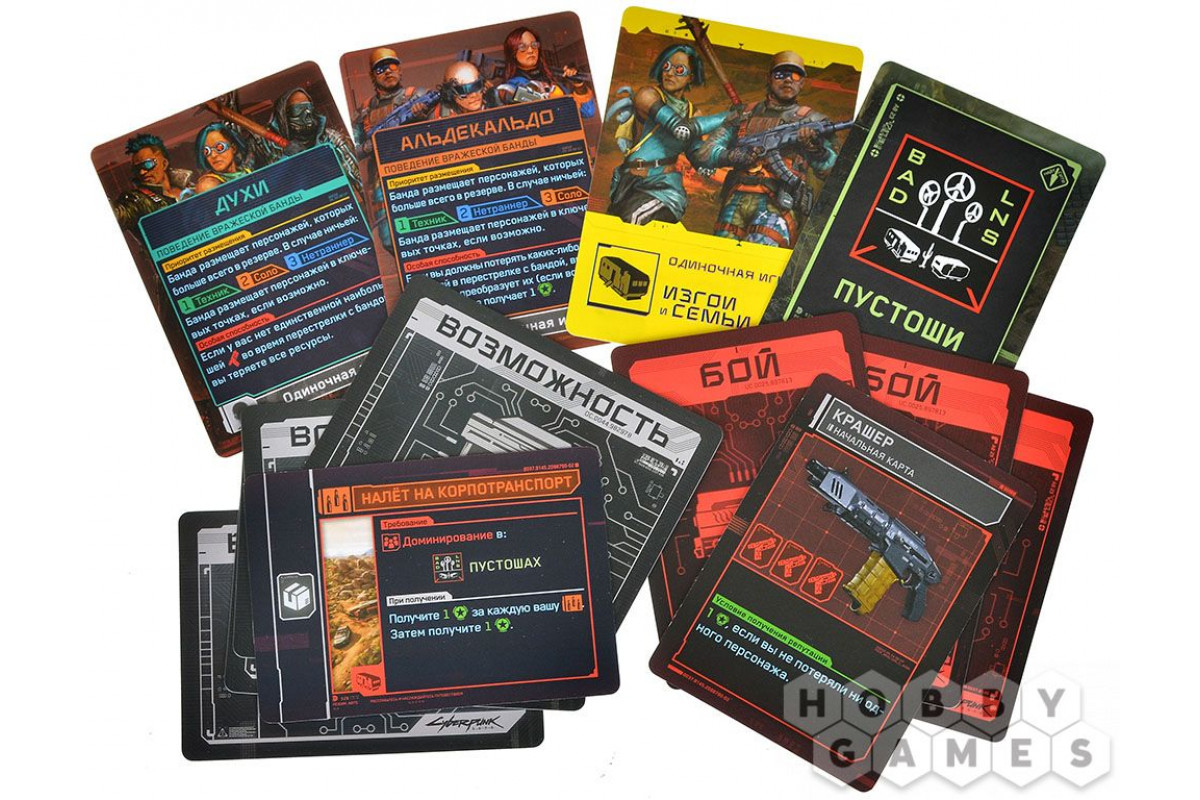 "Cyberpunk 2077: Банды Найт-Сити" – это соревновательная настольная игра для 1-4 участников. Каждый из вас возглавит безжалостную банду, пытающуюся единолично прибрать к рукам криминальное подполье блистательного ада под названием Найт-Сити. Вступайте в схватки за власть над городом с другими предприимчивыми бандами в мясном и сетевом пространстве. История запомнит лишь сильнейших, а путь к славе им проторит репутация на улицах.