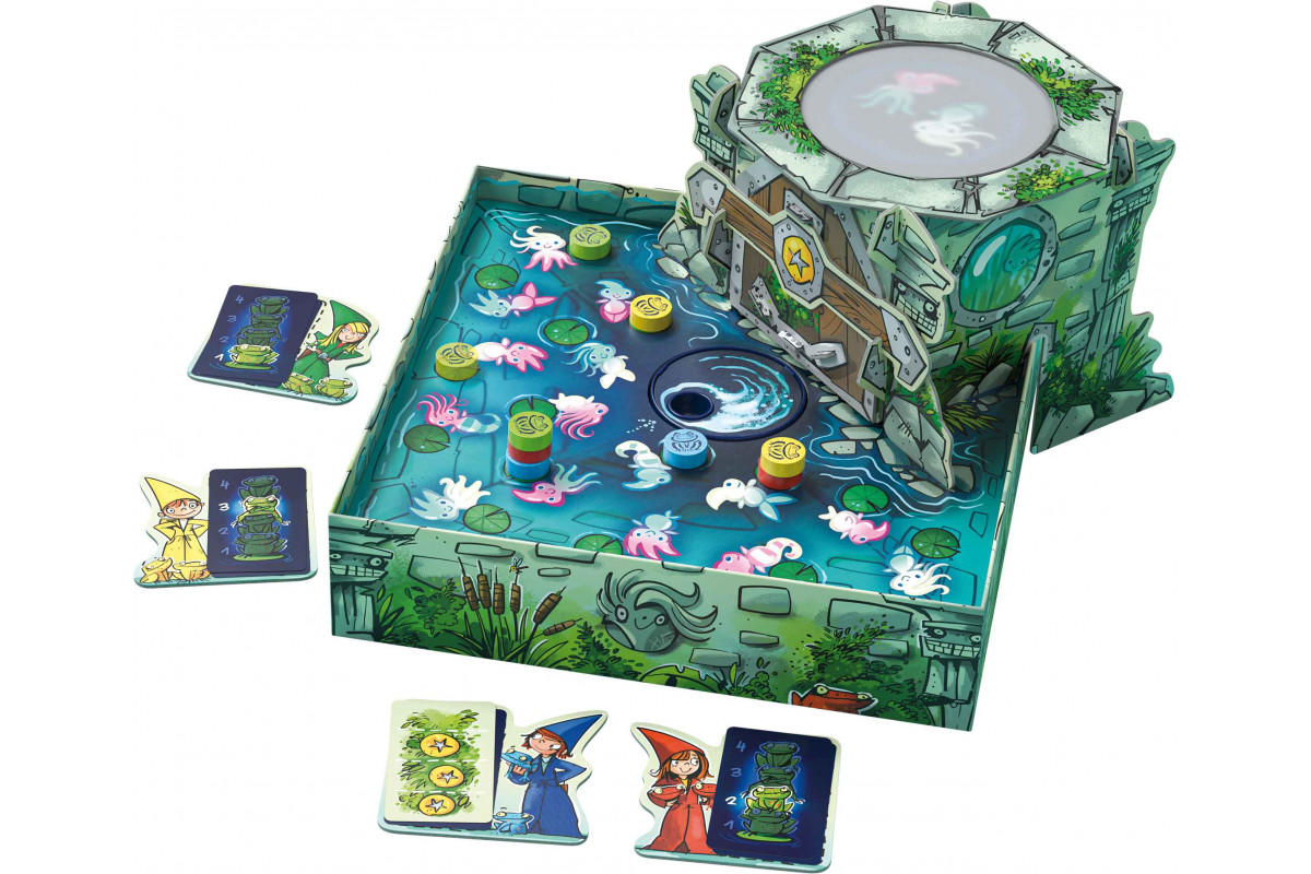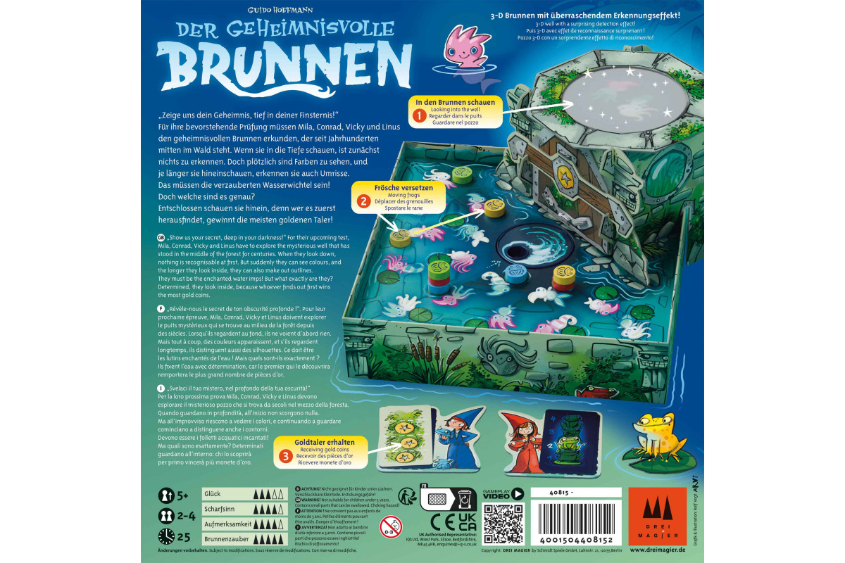 „Zeige uns dein Geheimnis, tief in deiner Finsternis!“ Für ihre bevorstehende Prüfung müssen Mila, Conrad, Vicky und Linus den geheimnisvollen Brunnen erkunden, der seit Jahrhunderten mitten im Wald steht. Wenn sie in die Tiefe schauen, ist zunächst nichts zu erkennen. Doch plötzlich sind Farben zu sehen, und je länger sie hineinschauen, erkennen sie auch Umrisse. Das müssen die verzauberten Wasserwichtel sein! Doch welche sind es genau? Entschlossen schauen sie hinein, denn wer es zuerst herausfindet, gewinnt die meisten goldenen Taler!
