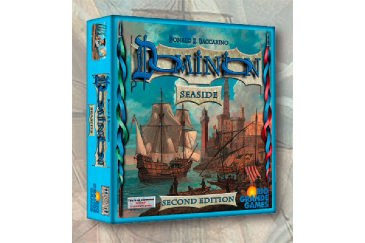 This is the 2nd addition to Dominion. It adds 26 new Kingdom cards to Dominion. Its central theme is your next turn; there are cards that do something this turn and next, cards that set up your next turn, and other ways to step outside of the bounds of a normal turn. Dominion: Seaside is an expansion to both Dominion and Dominion: Intrigue. As such, it does not contain material for a complete game. Specifically, it does not include the Treasure, Victory, Curse, or Trash cards. Thus, you will need either the base game or Intrigue to play with this expansion and have experience playing Dominion with either of the first two games. It is designed to work with either or both of these sets, and any future expansions that may be published.
