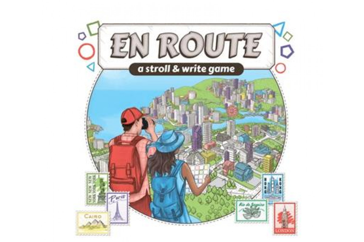 En Route is a flip-and-write game in which you create tour routes to the most interesting landmarks of the real-world cities (London, New York City, Hong Kong, Paris, Cairo, and Rio de Janeiro) and the made-up First City packed full of geek references. Every city features basic and specific mechanisms, so all of them play and feel differently.