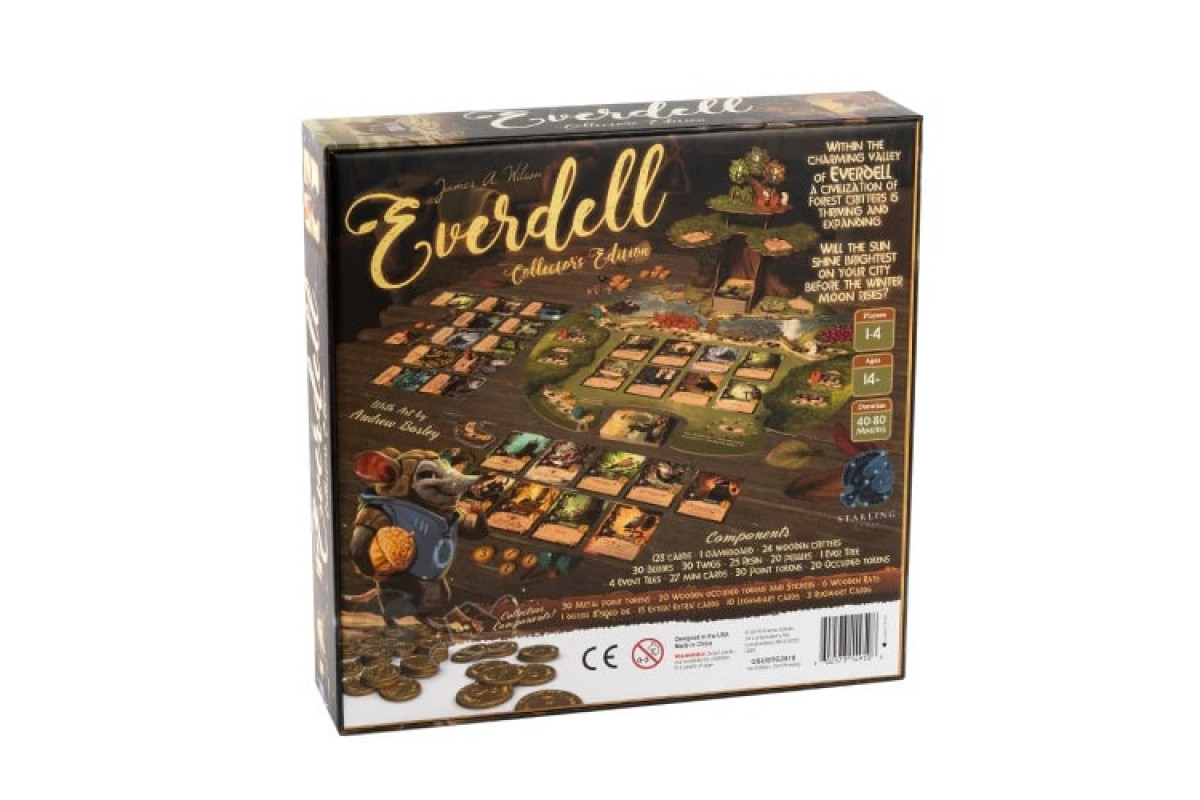 Everdell is a streamlined worker placement game that features a detailed world realized through stunning artwork. Utilizing a tableau-building mechanic, players will work to build a city of critters and constructions. Everdell is easy to learn, yet offers satisfying strategic depth and endless replayability.