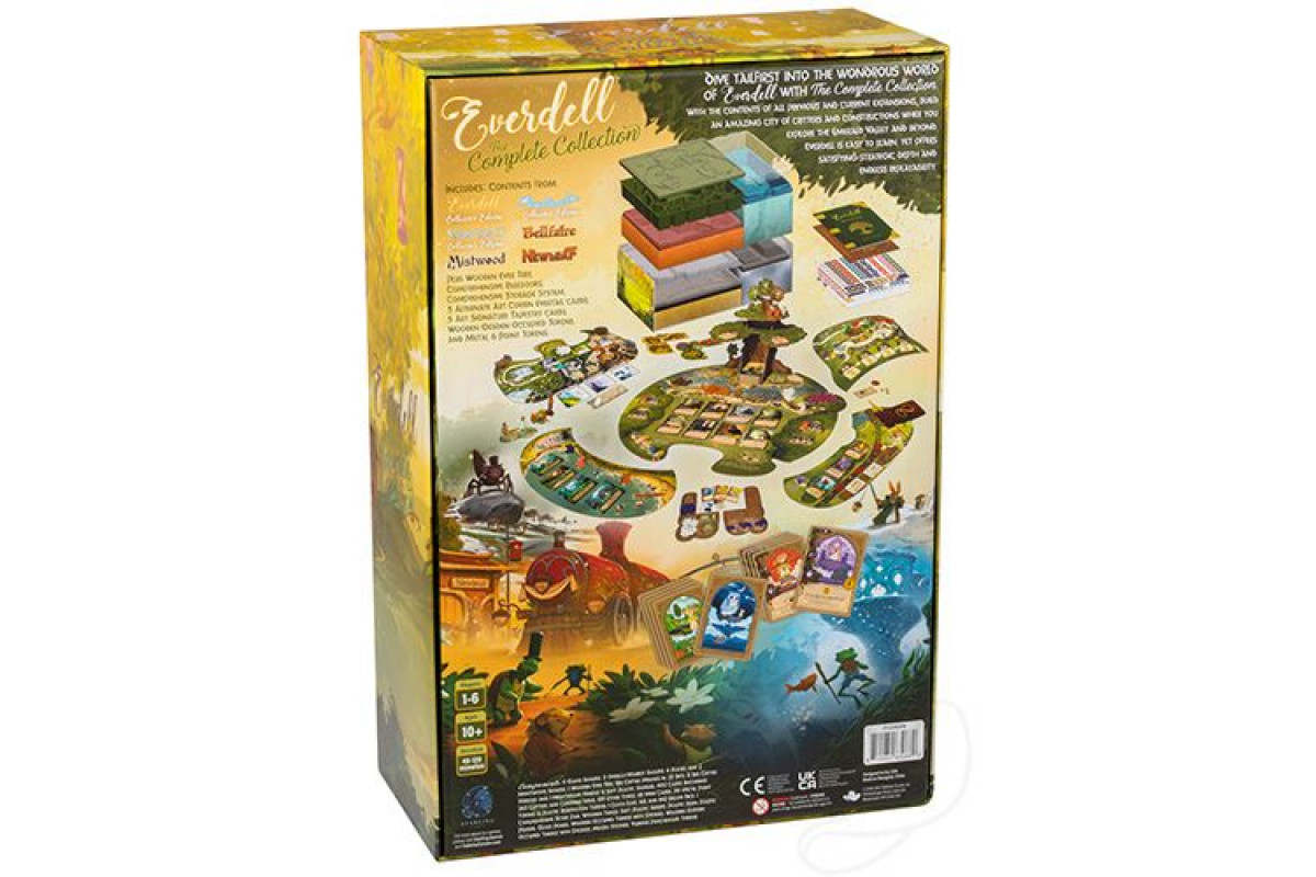 Dive tailfirst into the world of Everdell with the Complete Collection. Build a city of critters and constructions and explore the Emerald Valley and beyond; celebrate the Bellfaire, wonder at Newleaf’s mechanical marvels, trek into the Spirecrest Mountains, explore the underwater depths of Pearlbrook, and chance the dangers of Mistwood. Play against automated opponents including the dastardly Rugwort and cunning Nightweave, meet heroes of renown in our Legends II and Corrin Evertail expansion packs, and find abundance in new farms in our Through Every Season expansion pack. Everdell is easy to learn, yet offers satisfying strategic depth and endless replayability.