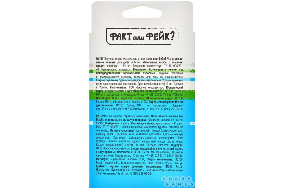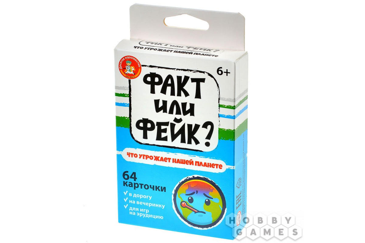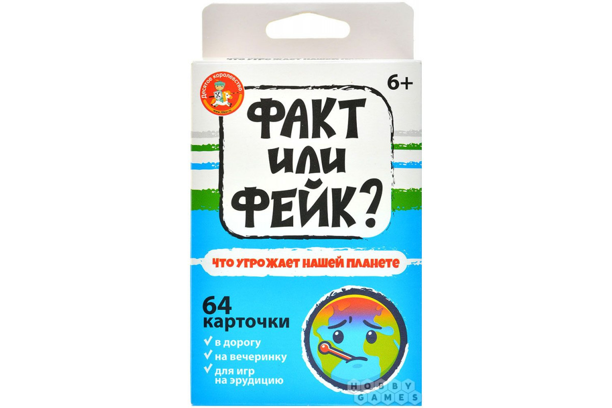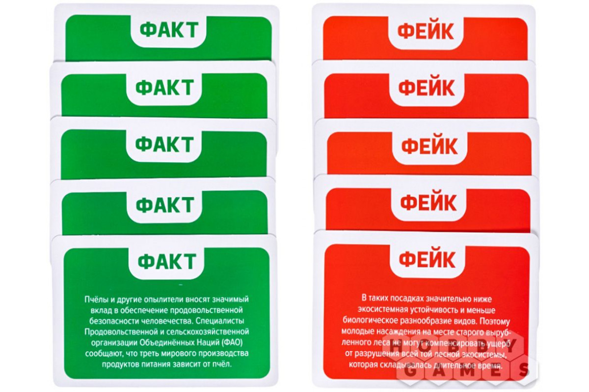 Правила просты: перемешайте колоду карт, положите в центр стола фактами вверх, зачитайте факт на первой карте и ответьте – правда это или фейк. Переверните карту, чтобы проверить свой ответ. Угадали – карта ваша, а если нет, то уберите карту в сторону. Победит игрок, набравший больше всех карт.