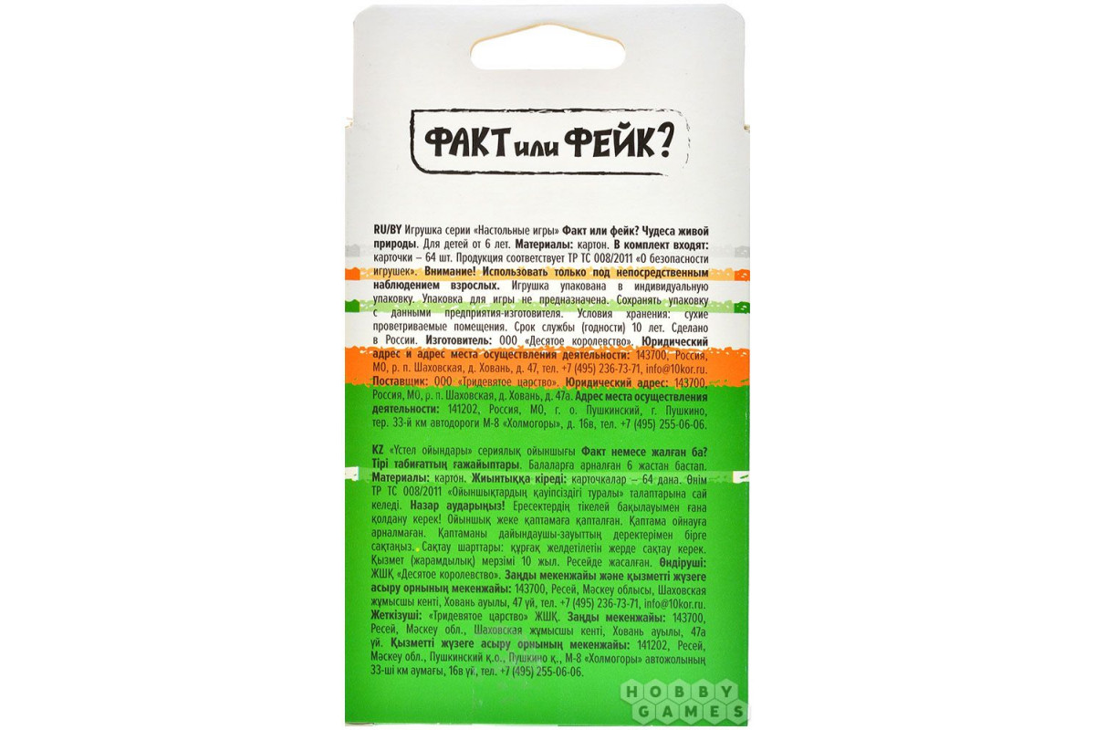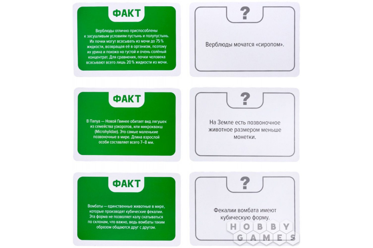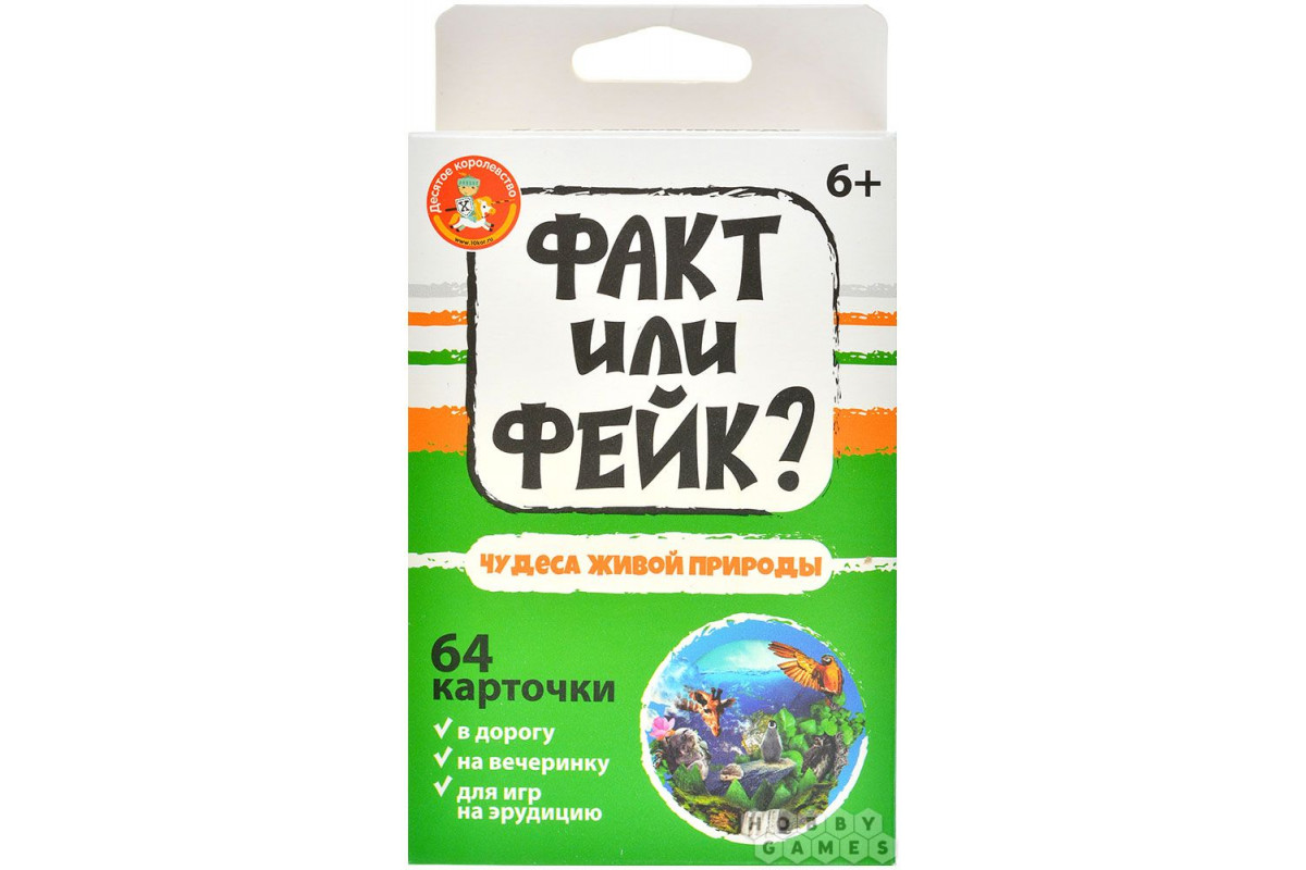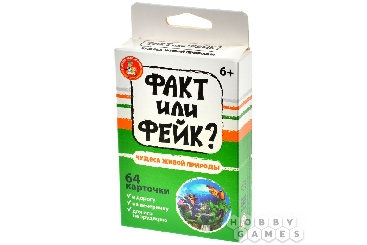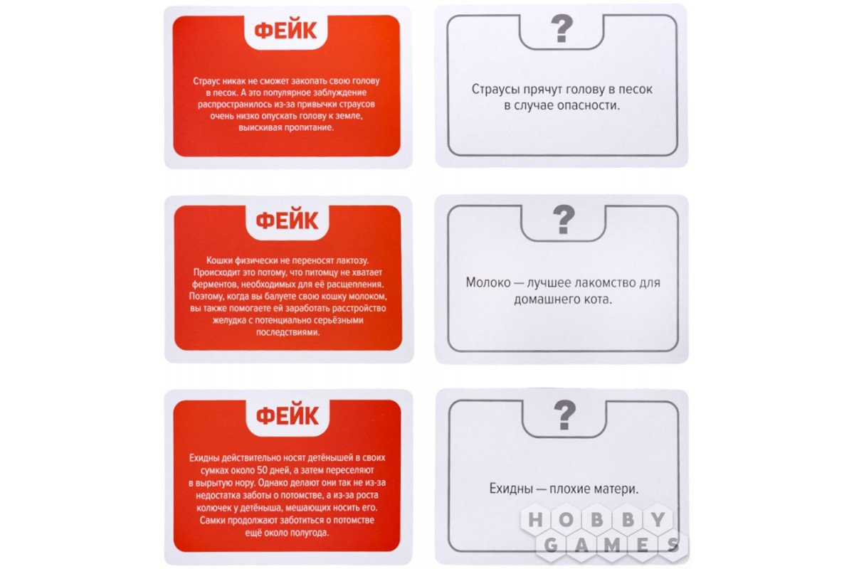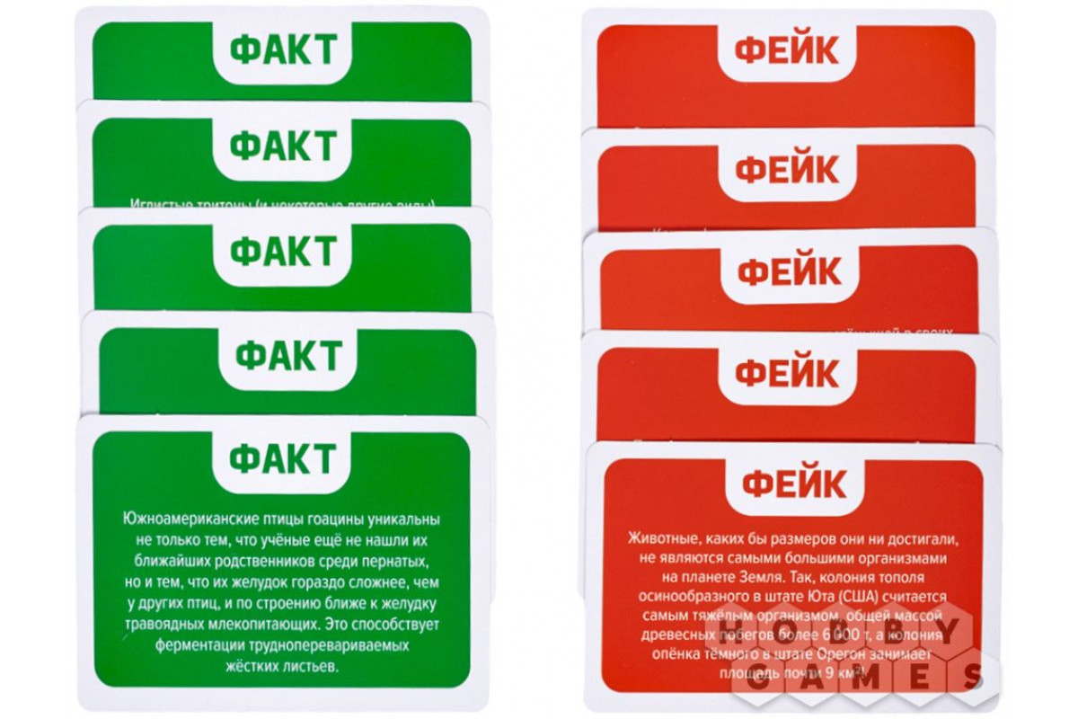 Правила просты: перемешайте колоду карт, положите в центр стола фактами вверх, зачитайте факт на первой карте и ответьте – правда это или фейк. Переверните карту, чтобы проверить свой ответ. Угадали – карта ваша, а если нет, то уберите карту в сторону. Победит игрок, набравший больше всех карт.