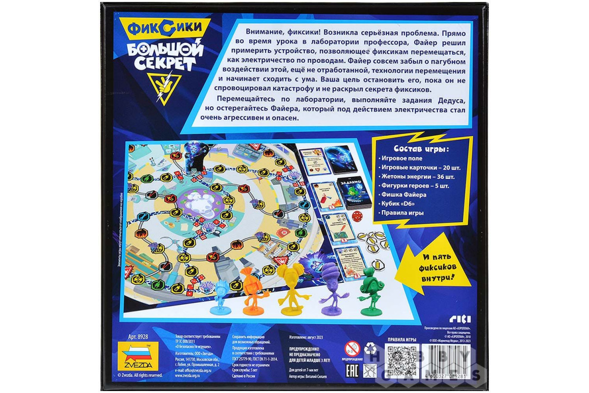 "Фиксики: Большой секрет" – это яркая и увлекательная настольная игра, в которой игроки вместе с любимыми героями – фиксиками – погружаются в атмосферу захватывающих приключений по лаборатории. Ваша задача – остановить неуправляемого Файера! Игра сочетает в себе динамичное перемещение по полю и выполнение интересных заданий с любимыми героями. Подойдёт для детей и всей семьи, подарит весёлое времяпрепровождение и улучшит внимательность!