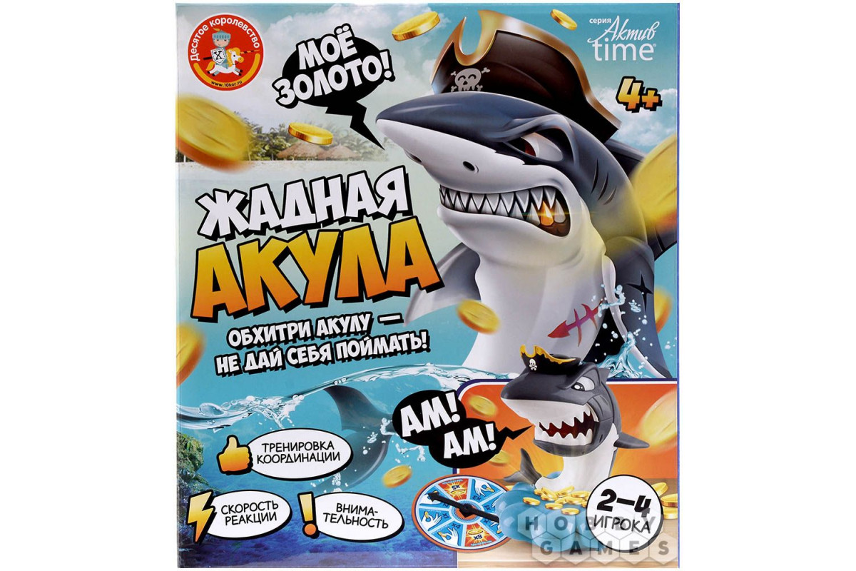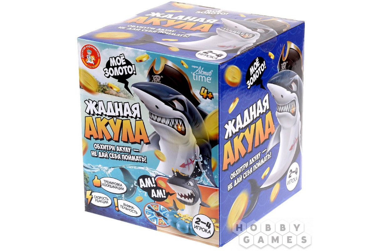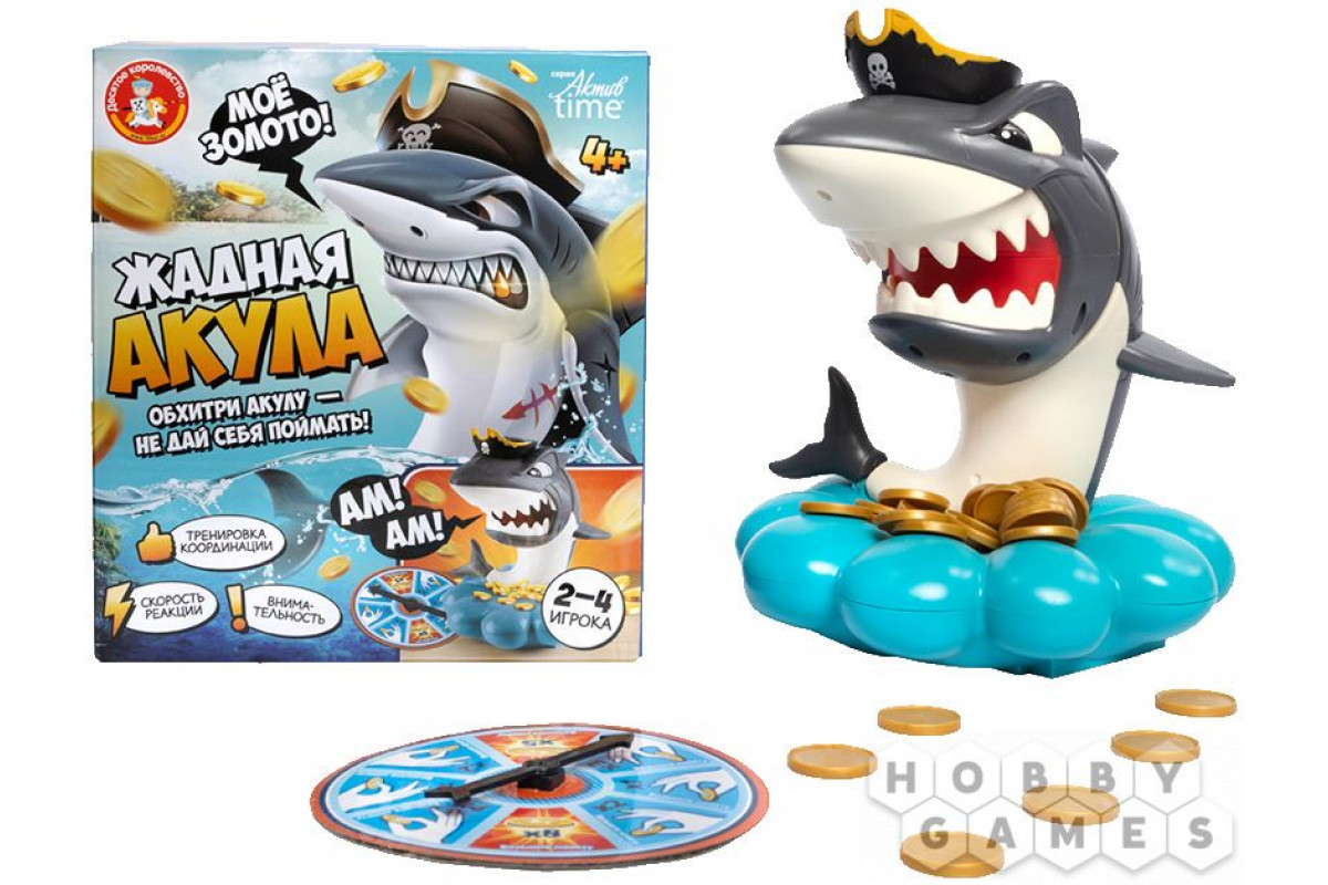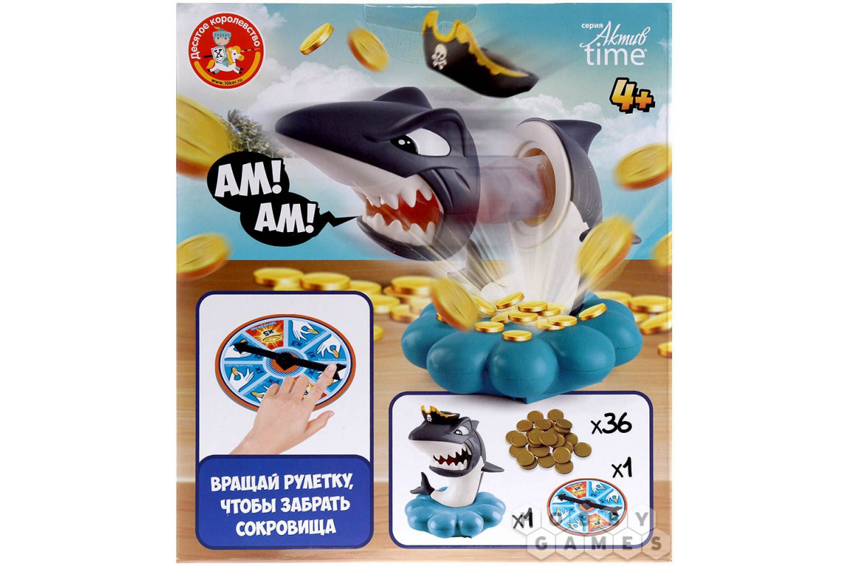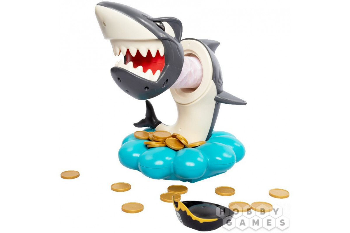 Во время игры вы по очереди будете красть монеты из-под самого носа акулы. Риск велик – если хищница заметит пропажу, она мгновенно "цапнет" вора, заставив его вернуть половину добычи. Каждый ход вам придётся раскручивать стрелку рулетки, чтобы узнать, сколько монет можно забрать. Главное – успеть до того, как акула проснётся. Победителем станет тот, кто сумеет обхитрить морскую пиратку и собрать больше всех сокровищ.