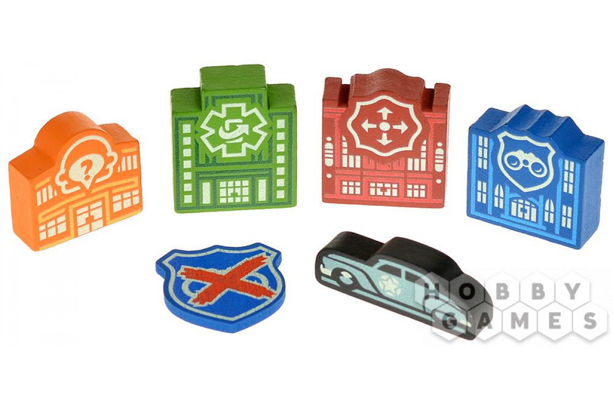 - Пожарная часть позволяет взять случайный жетон социальной группы из стопки. Используя этот жетон, детектив может один раз переместить каждого жителя выбранной социальной группы
