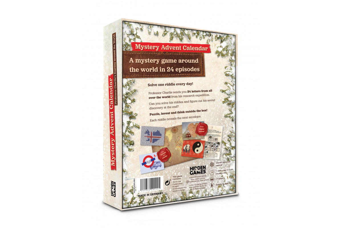 A game in 24 episodes - playable in one evening or 24 days. In the letterbox of Professor Charlie's famous tinkering workshop you will find 24 puzzling letters that excite your curiosity. No trace of Professor Charlie. You set off on a long puzzle journey - directly on the crazy professor's trail. Can you solve all the puzzles and follow his journey? Are you trustworthy and smart enough to learn about Professor Charlie's secret discovery? The puzzle game is divided into 24 episodes. You should allow about 3-4 hours for the entire game. GAME DURATION AROUND 5-15 MINUTES FOR 1 PUZZLE; 3-4 HOURS TOTAL