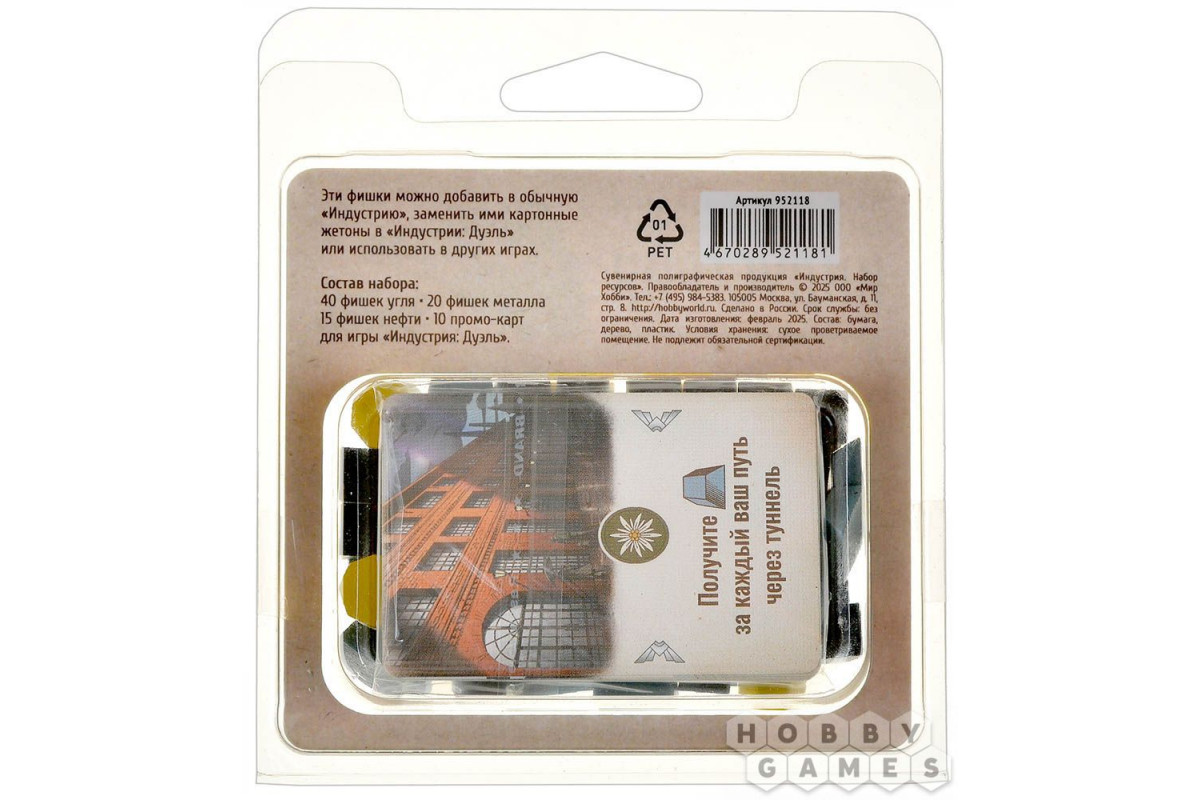 Перед вами уникальной набор ресурсов для игры "Индустрия". Внутри вы найдёте деревянные фишки для замены картонных жетонов в "Индустрии: Дуэль", использования в базовой игре (если всё, что было в коробке, вы уже истратили, а производство не стоит на месте) или для других игр. Но не одними ресурсами богаты: что приятнее всего, вас также ждут 10 эксклюзивных промокарт для "Дуэли", которые добавят глубины и новых тактических возможностей! Практично, эстетично и функционально – ваш стол заиграет новыми красками, а игровой процесс – новыми стратегическими поворотами!
