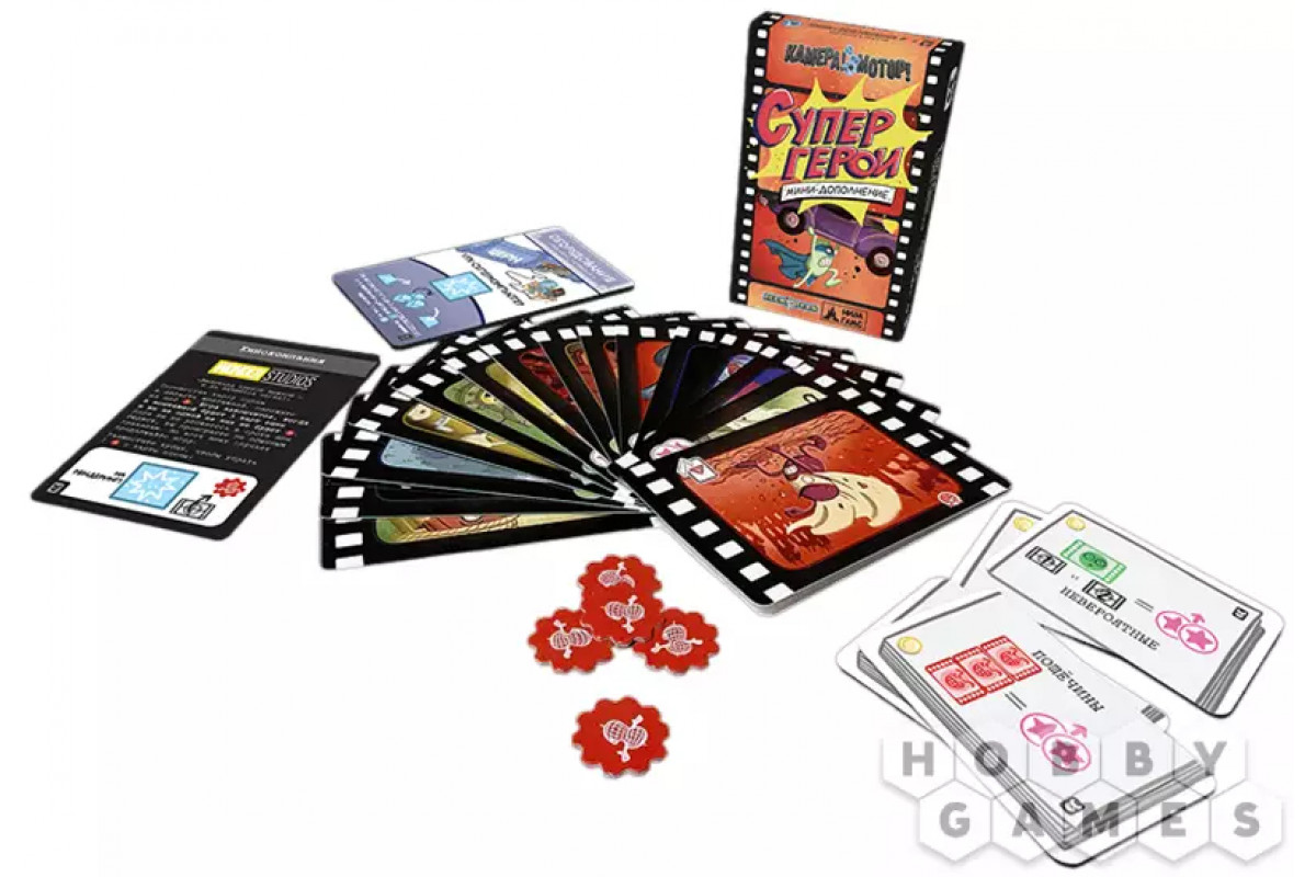 Мини-дополнение "Супергерои" добавляет в игру новые типы карт и правила, которые расширяют тактические возможности при съёмке фильма. Карта оборудования является одноразовой: после использования кубика на ней карта переворачивается и больше не участвует в партии. На некоторых картах сцен появились новые бонусы за завершение съёмок: пополнение бюджета или возможность уладить одну неприятность. Карты сценария в этом дополнении стали двусторонними, что позволяет игроку выбирать любую сторону карты при необходимости её замены в стопке.