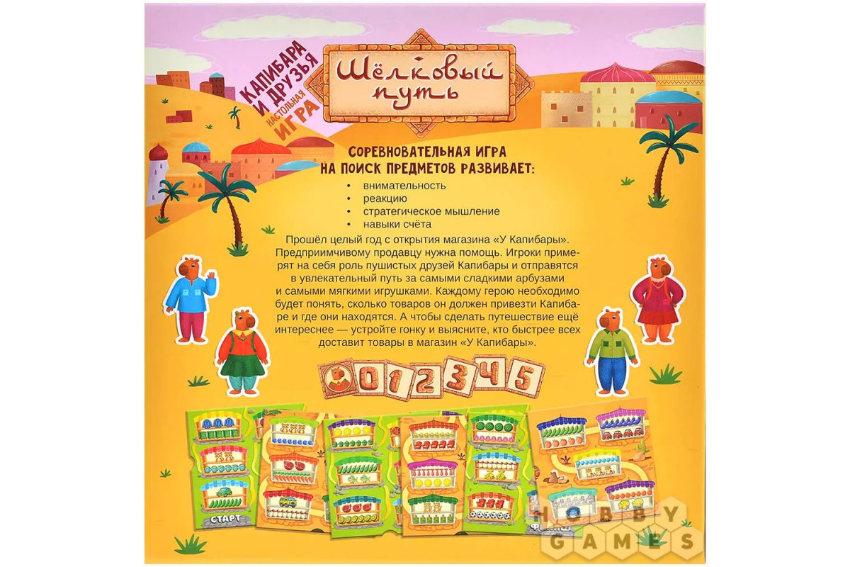Ваша задача – отправиться в увлекательное путешествие, чтобы раздобыть новый ассортимент и сделать магазин ещё лучше. Кто окажется самым шустрым и привезёт больше нужных предметов? В этом приключении главное оружие – внимательность и умение быстро считать. Придётся складывать цифры на карточках, искать подходящие ячейки на игровом поле и мчаться к финишу быстрее соперников. Готовы помочь капибаре? Тогда в путь!