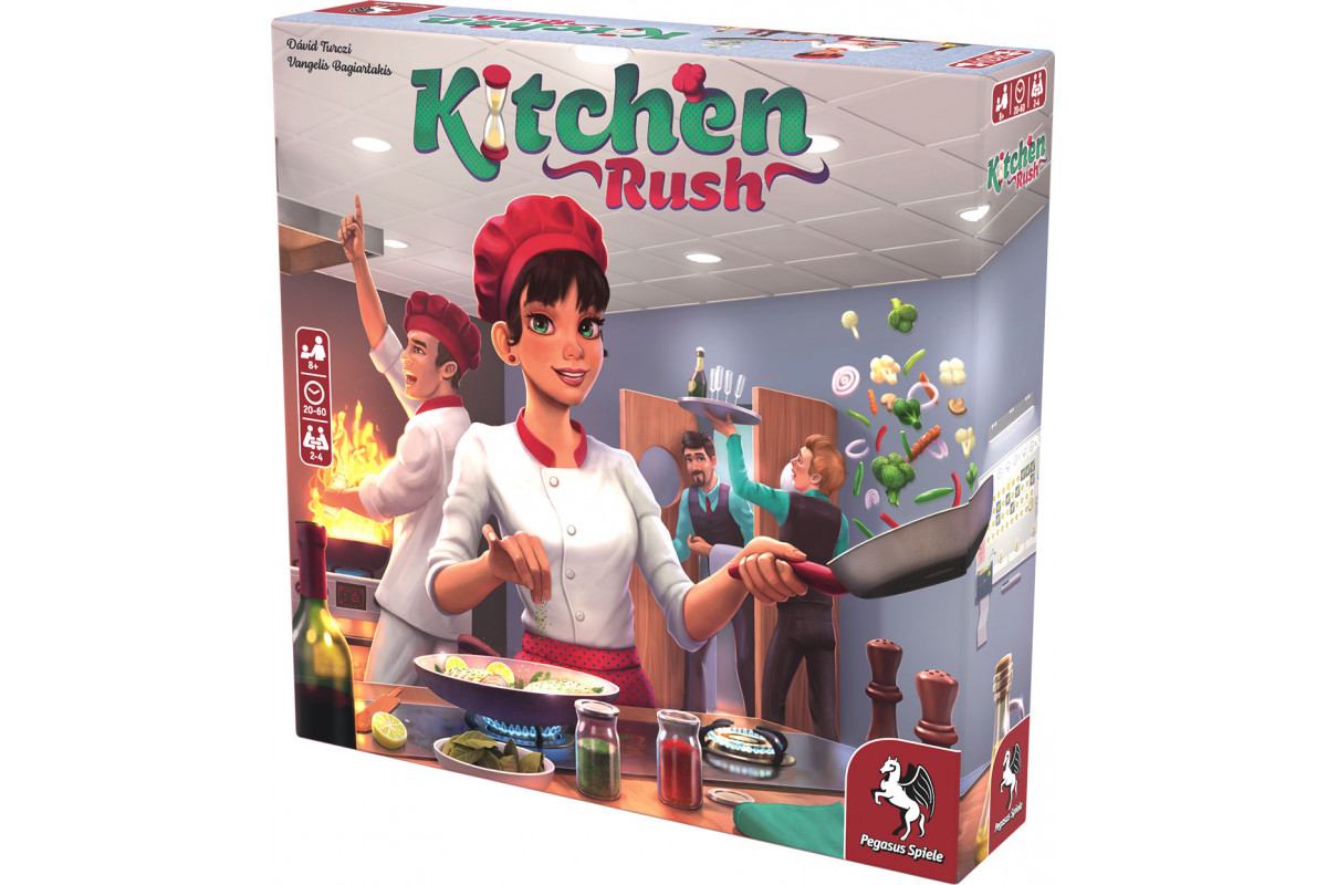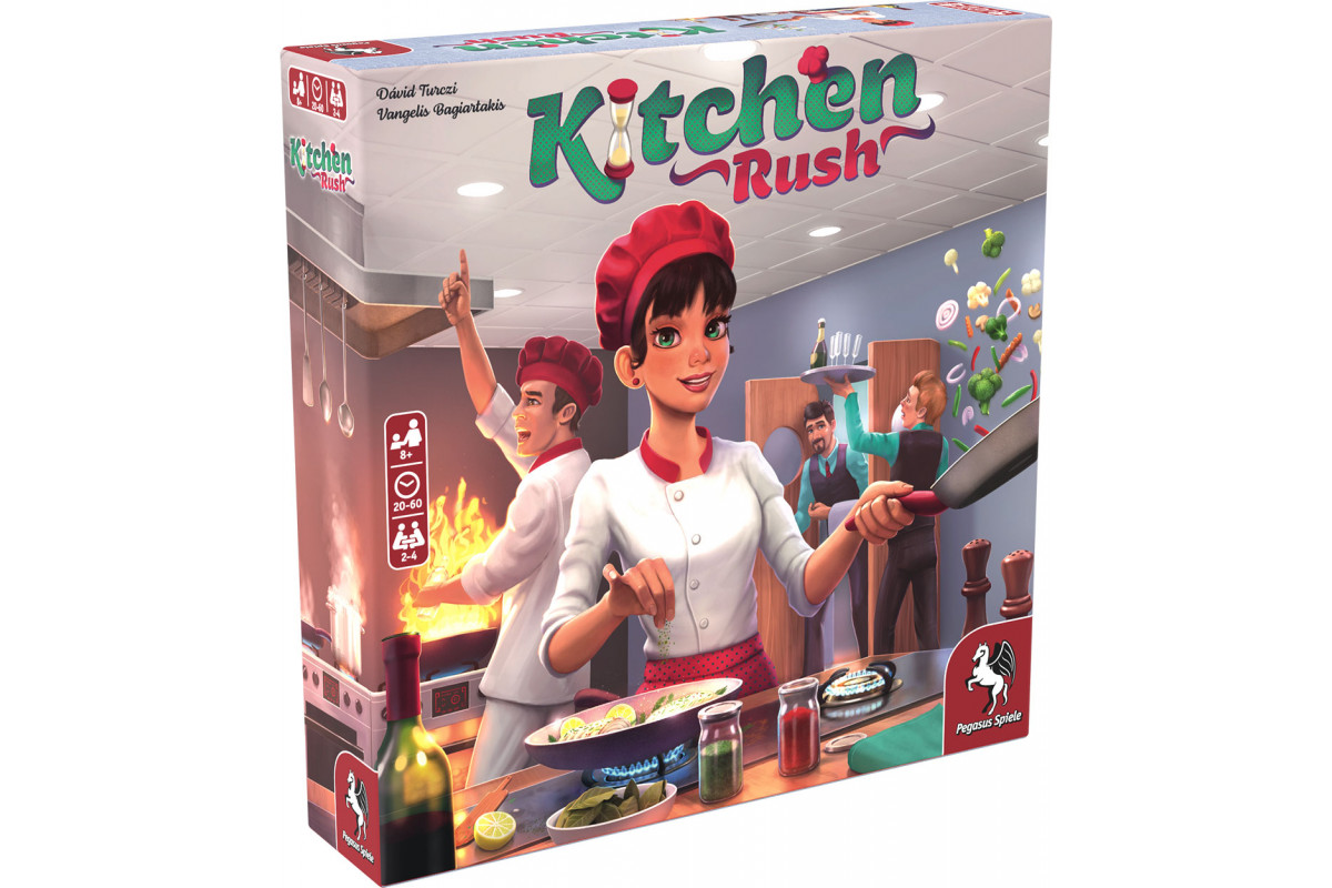 Kitchen Rush is a cooperative real-time worker placement game that evokes the feel of a busy kitchen by using hourglasses as workers. While all play simultaneously, and time is limited, every action in the game – from cleaning plates to serving dishes – requires time. Coordination, discussion, and staying on top of all tasks is the key to success in Kitchen Rush. However, since nobody is born a star chef, the game teaches players all rules through 8 increasingly difficult scenarios, and allows them to upgrade their restaurant with parts of the modular game board along the way. At the same time this allows players to scale the game’s difficulty to their liking.
