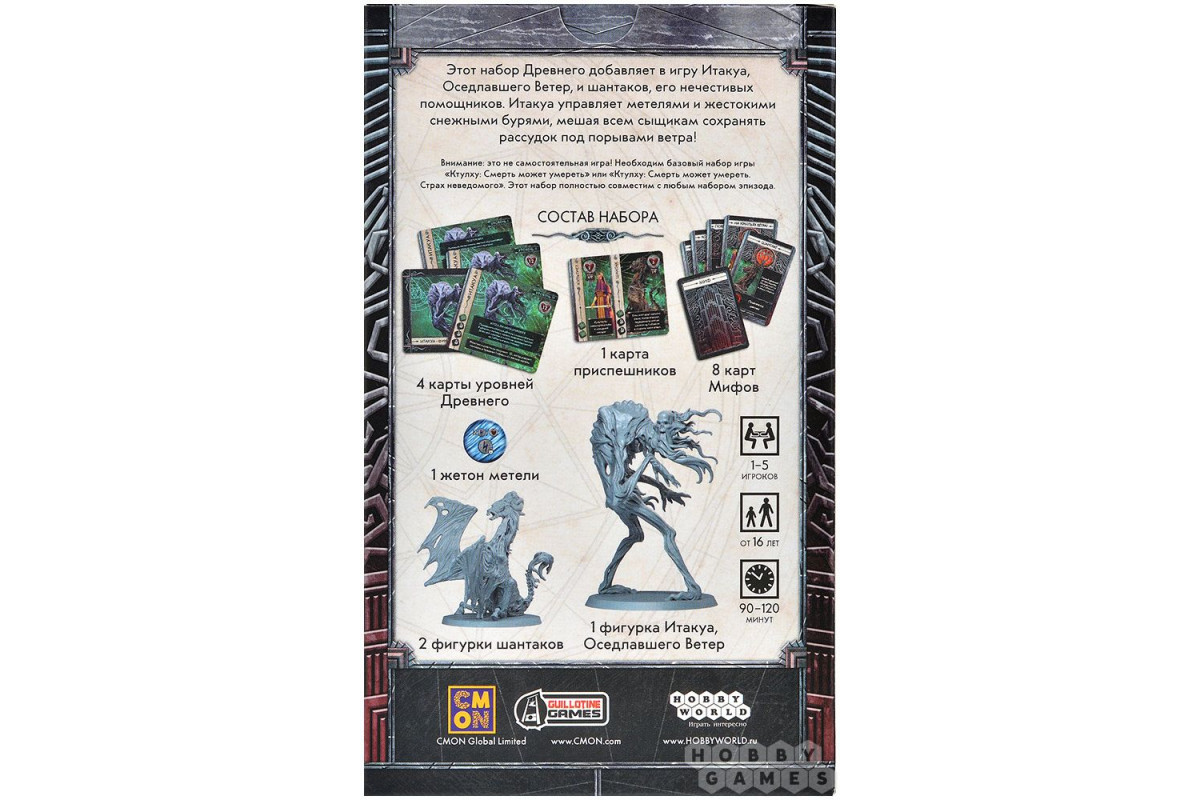 Это дополнение вводит в игру одного из самых опасных Древних – Итакуа, чья власть над метелями и снежными бурями превращает каждый эпизод в борьбу за выживание. Когда он пробуждается, на поле появляется жуткая метель, несущая не только холод, но и изнеможение. С каждым ходом буря усиливается, приближаясь к игрокам и выпуская из ледяного вихря слуг Итакуа – шантаков. Эти чудовищные гибриды птицы и коня невероятно живучи, и связь с хозяином делает их ещё опаснее: пока рядом бушует вьюга, они вытягивают из сыщиков последние остатки сил перед атакой.