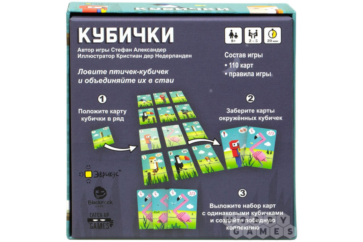 Эта настольная игра может стать идеальным атрибутом вашего семейного досуга. Если вам импонирует стиль кубизма, если вам нравятся птицы и если вам по душе механика карточных настольных игр со сбором сетов, то эта игра определённо для вас! К игре захочется возвращаться снова и снова, ведь в неё всегда можно сыграть по усложнённым правилам, а на 110 игровых картах вы не найдёте ни одной повторяющейся иллюстрации.