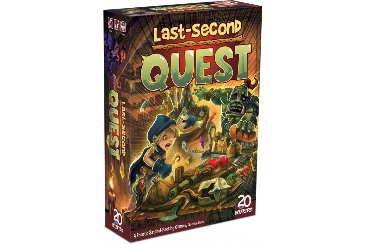 In Last-Second Quest, you and your opponents are archetypical adventurers, with a gridded board representing your backpack, staring at a shared pile of items. Each round a quest is revealed with a unique set of required and forbidden items, and you only have seconds to fill your storage board with as many of the required items you can, while avoiding the forbidden ones. Once everyone is done, you take turns defending your choices, then score based on how well you prepared, and how few empty spaces are left over. The best prepared adventurer wins!