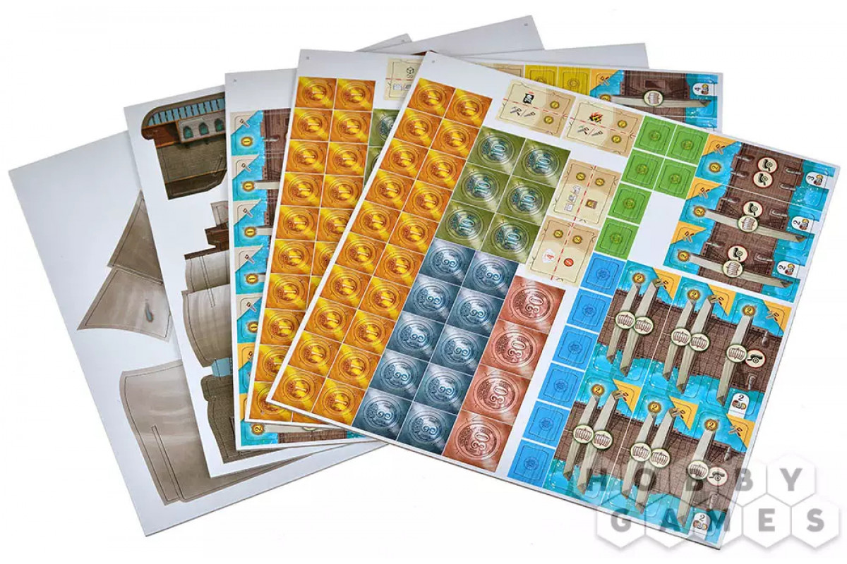 По мере продвижения вы будете совершенствовать корабль: увеличивать скорость, расширять трюмы и усиливать боевые качества. Команда тоже растёт вместе с вами – персональная колода карт открывает уникальную механику развития, позволяя переворачивать карты прямо в протекторах и добавлять новые навыки. Захват островов приносит товары, а построенные на них здания укрепляют ваши позиции и открывают дополнительные возможности. В морских боях всё решают броски кубиков: вас ждут схватки с другими капитанами и столкновения с торговыми судами, где риск и удача идут рука об руку.