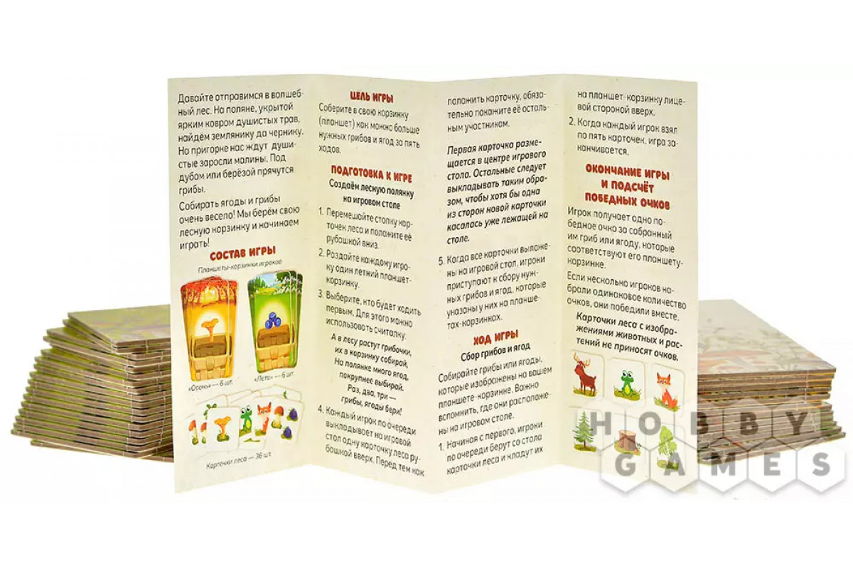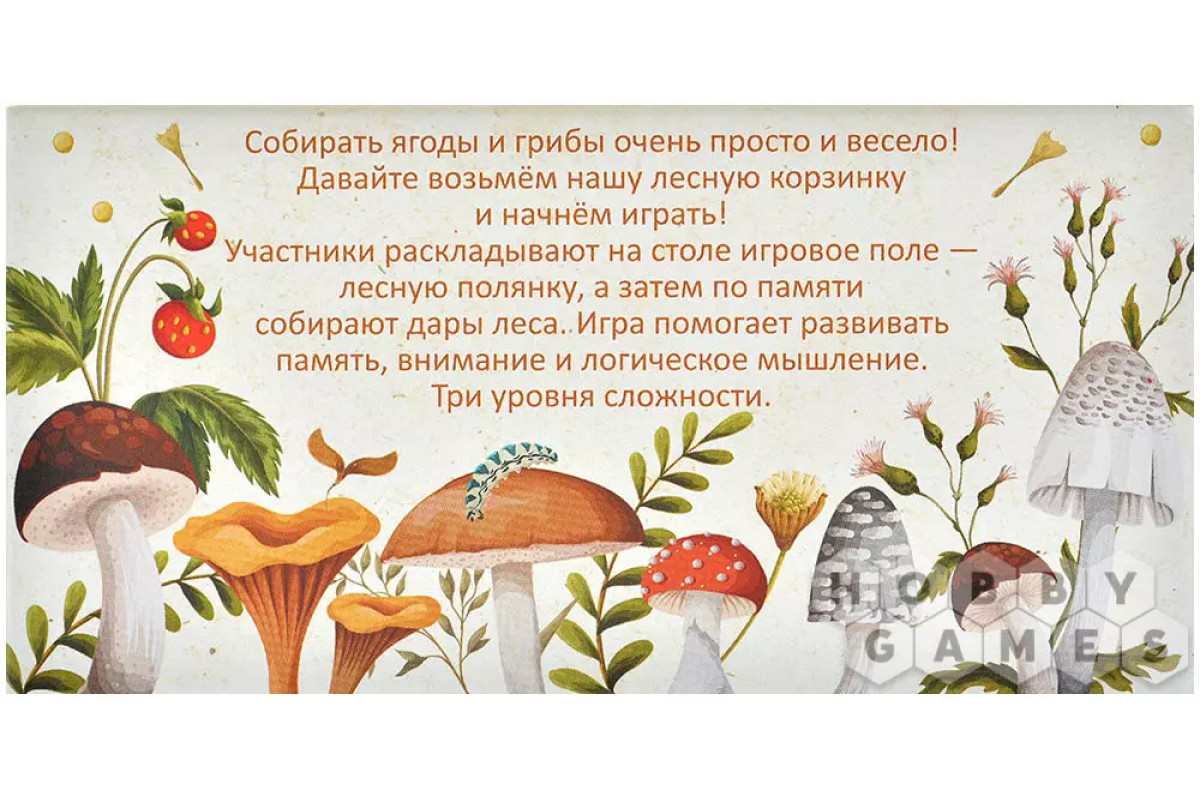 Нет ничего лучше, чем прогулка по лесу в поисках спелых ягод и грибов! А что, если устроить такую же весёлую "тихую охоту" прямо за столом? Берите корзинку, расстилайте игровое поле – уютную лесную полянку – и вперёд за дарами природы!