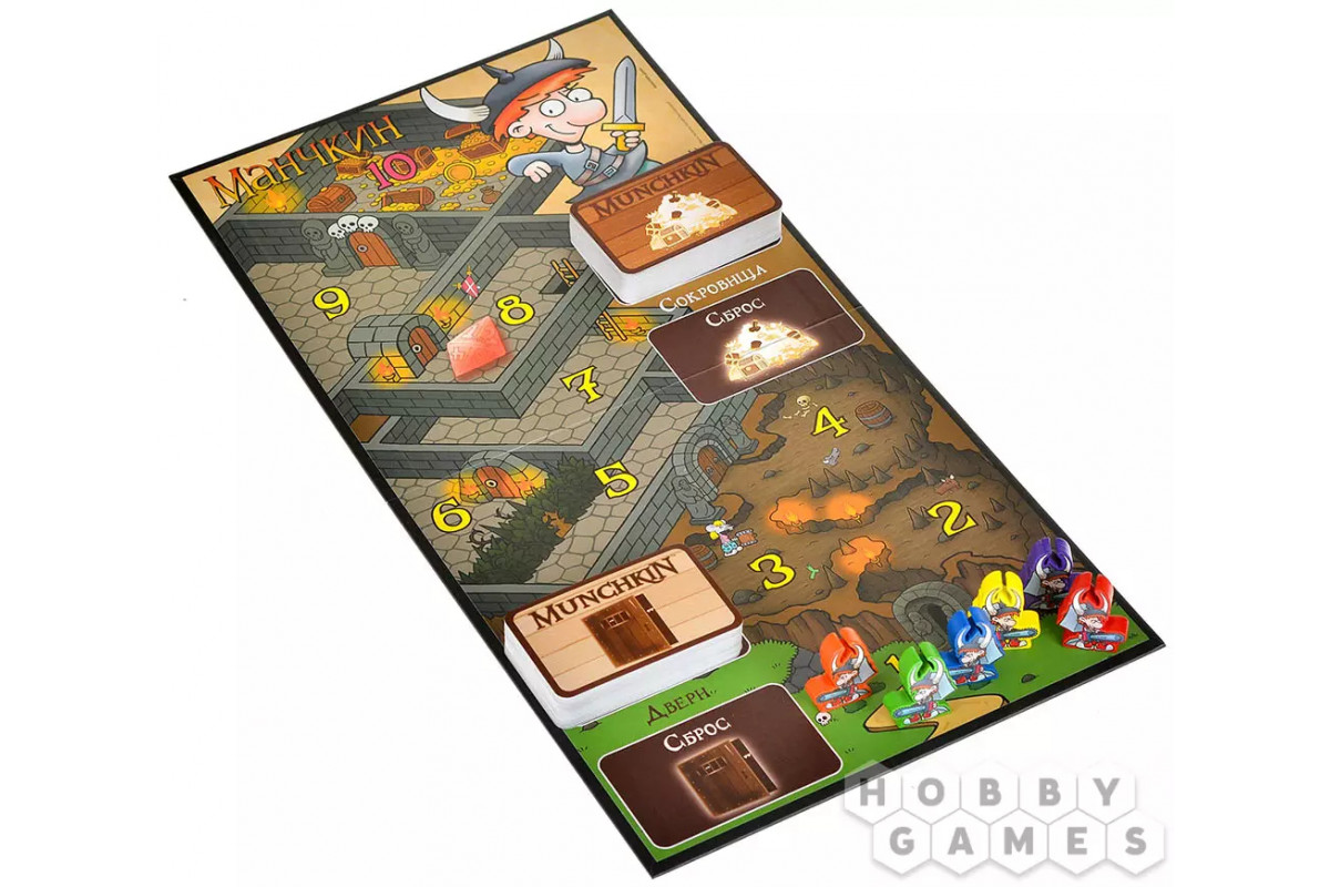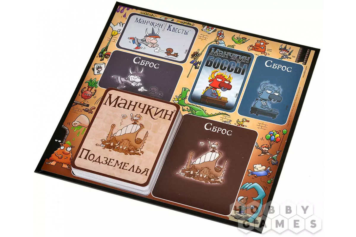 - 38 карт подземелий и 32 карты порталов из дополнений "Манчкин 6: Безбашенные Подземелья" и "Манчкин 6.5: Бабайки из склепа"