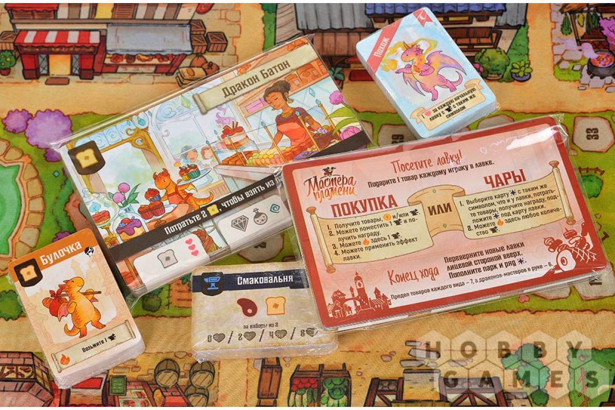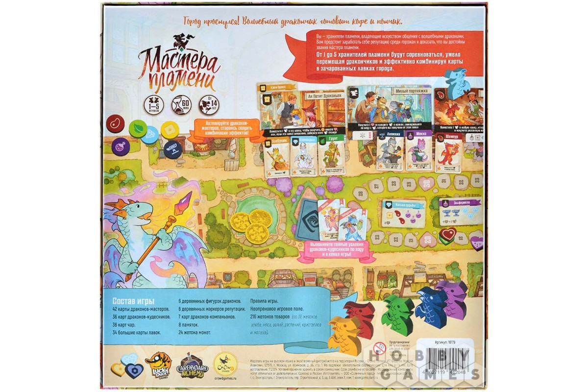 "Мастера пламени" – это уютная стратегическая игра для всей семьи. Вам предстоит стать покровителем драконов-ремесленников, подбирать им идеальные лавочки и помогать творить чудеса. Для этого нужно будет размещать своих хвостато-крылатых подопечных в мастерских, активировать их уникальные способности и накладывать заклинания, чтобы получать ценные ресурсы и повышать свою репутацию. Каждый ход – это выбор: собрать награды здесь или сейчас или вложить их в дальнейшее развитие, чтобы создать ещё более мощную комбинацию?