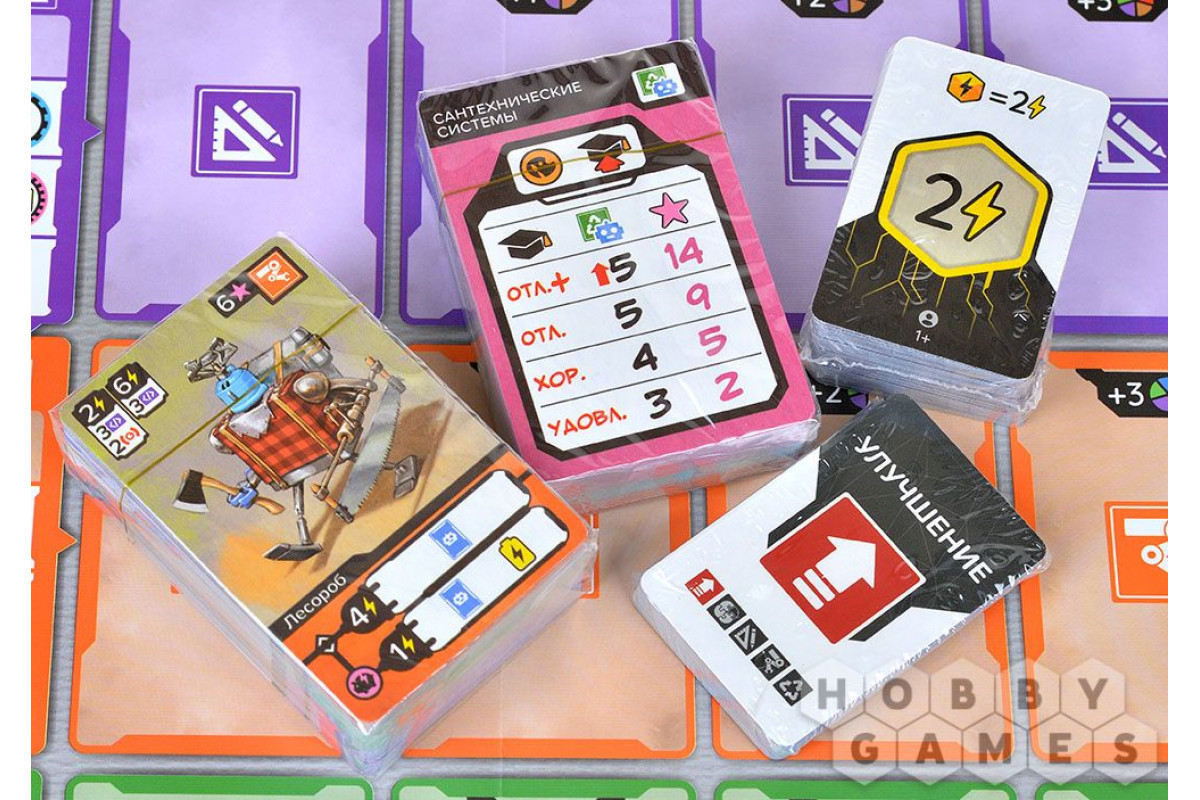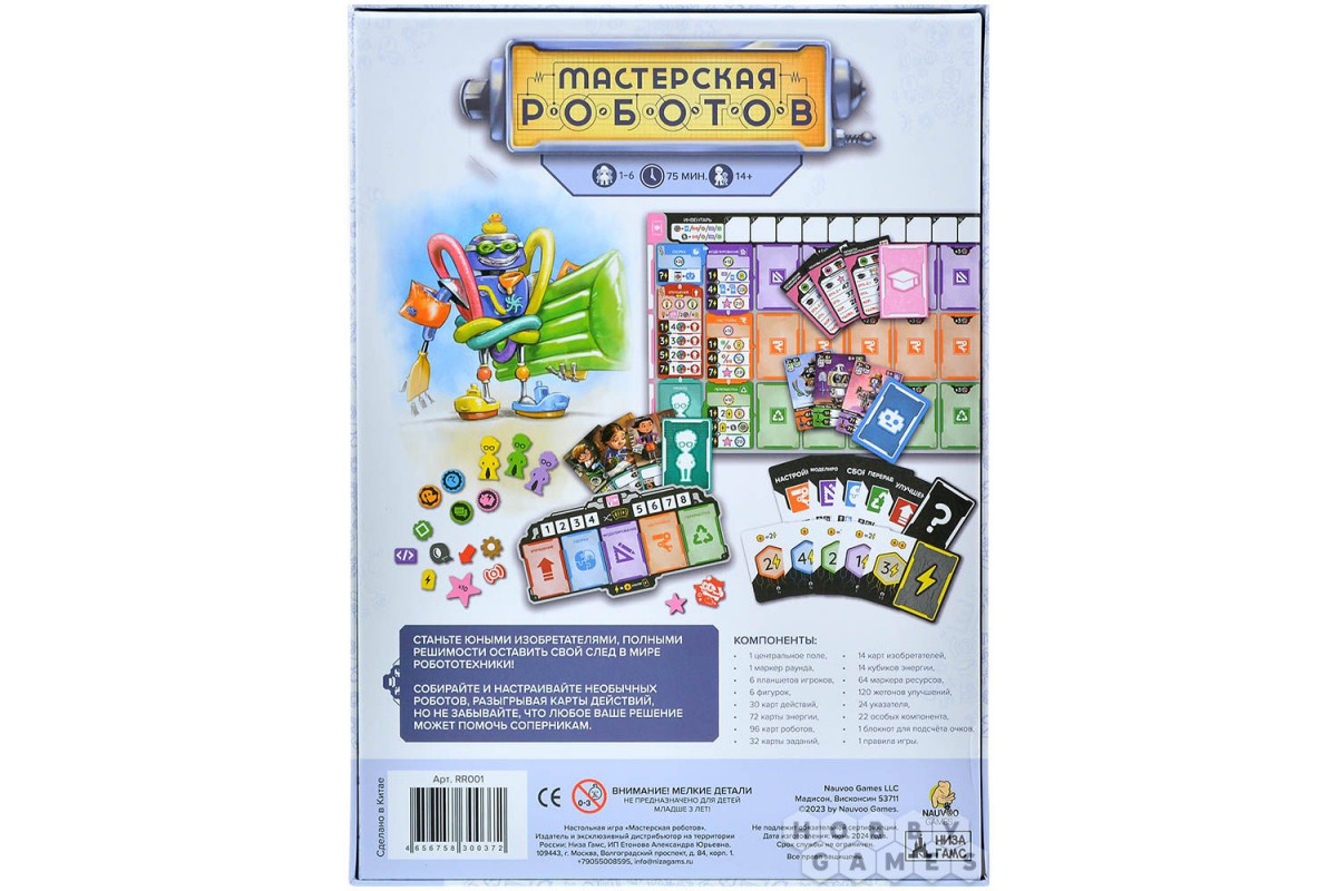 "Мастерская роботов" – это настольная игра, в которой вам предстоит проектировать необычных роботов и разыгрывать карты действий, усиливая их энергетическими картами. Каждое принятое решение будет влиять не только на вас: всякий раз, когда вы применяете кубики энергии, ваши оппоненты тоже получают возможность выполнить действия, даже если их планы были совсем другими. Это заставляет игроков внимательно следить за ходом партии и продумывать тактику на несколько шагов вперёд.