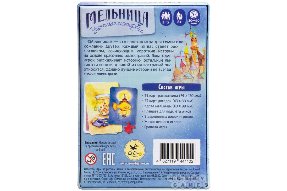 Рассказывать истории – всегда интересное и увлекательное занятие. Особенно, когда у вас есть благодарный и заинтригованный слушатель. Стать рассказчиком вам предлагает настольная игра "Мельница. Уютные истории". Собравшись в уютном семейном кругу или же вместе с близкими друзьями, вы будете придумывать короткие рассказы, опираясь на карты с очень милыми и "тёплыми" изображениями. История должна быть не слишком очевидной: другие игроки должны будут догадаться, что за историю вы рассказываете и с какой из карт она соотносится. Однако, не перемудрите: если не догадается никто, вы потеряете победные очки за текущий ход!