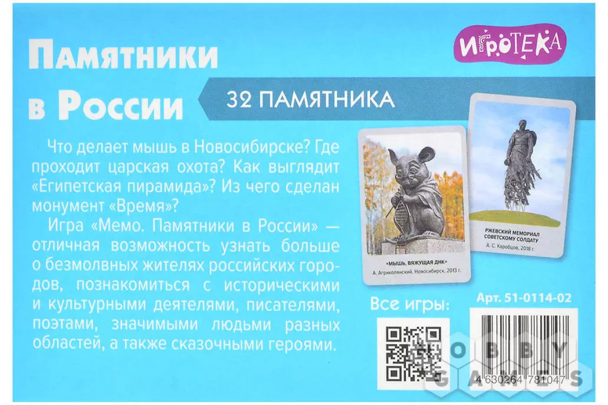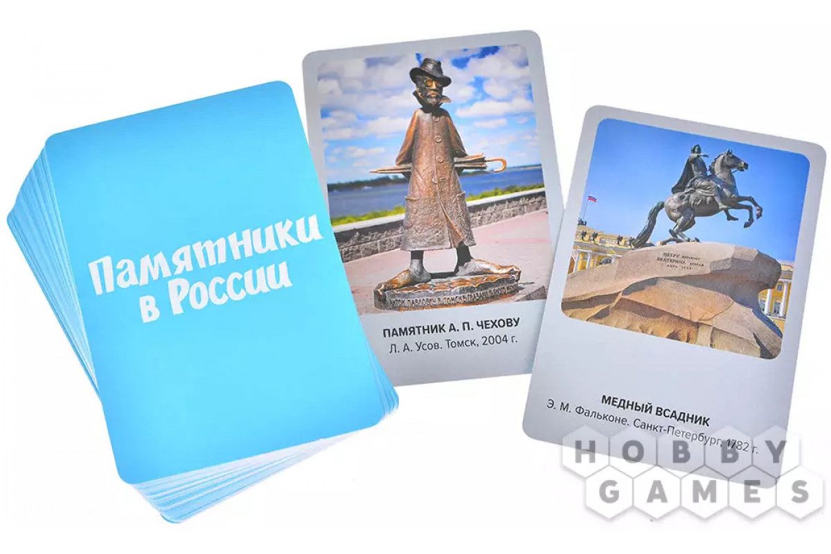 Внутри вас ждут парные карточки с удивительными фактами о скульптурах российских городов. Здесь и исторические деятели, и писатели с поэтами, и любимые сказочные герои, застывшие в бронзе и камне.
