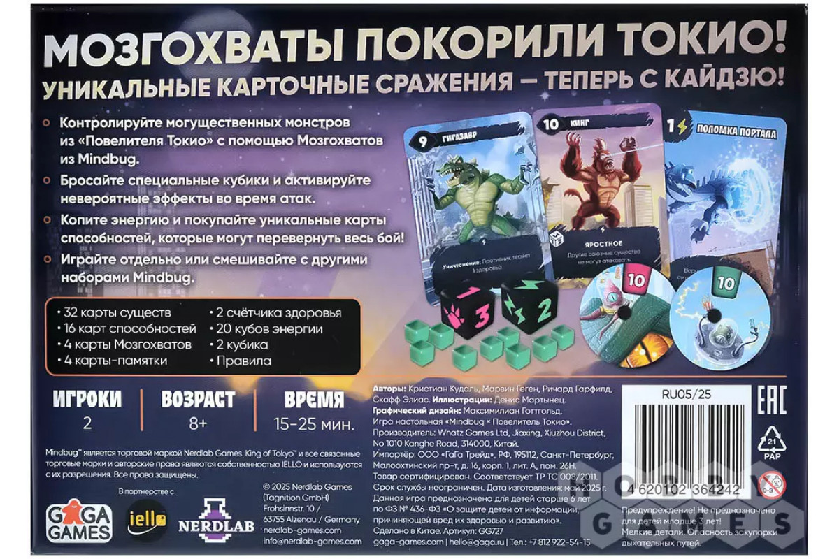 Готовы к самому безумному столкновению миров? Легендарная дуэльная механика Mindbug сталкивается с хаотичной вселенной "Повелителя Токио"! Этот гибрид дарит молниеносные партии, где тактика встречается с безудержным весельем. Призывайте гигантских кайдзю, усиливайте их кубиками и картами, а лучших монстров соперника – мгновенно крадите с помощью коварных Мозгохватов!