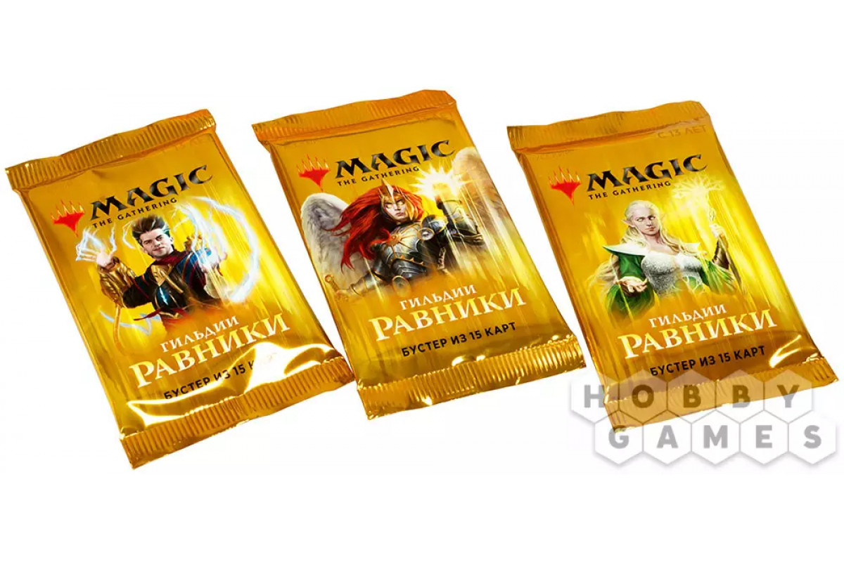 Бустер содержит 15 карт из сета "Гильдии Равники", скомпонованных случайным образом. Его можно использовать для формирования части новой или модификации уже имеющейся колоды. Бустер может содержать фольгированную карту. В таком случае она будет заменять одну из обычных (так как в бустере находится фиксированное количество карт).