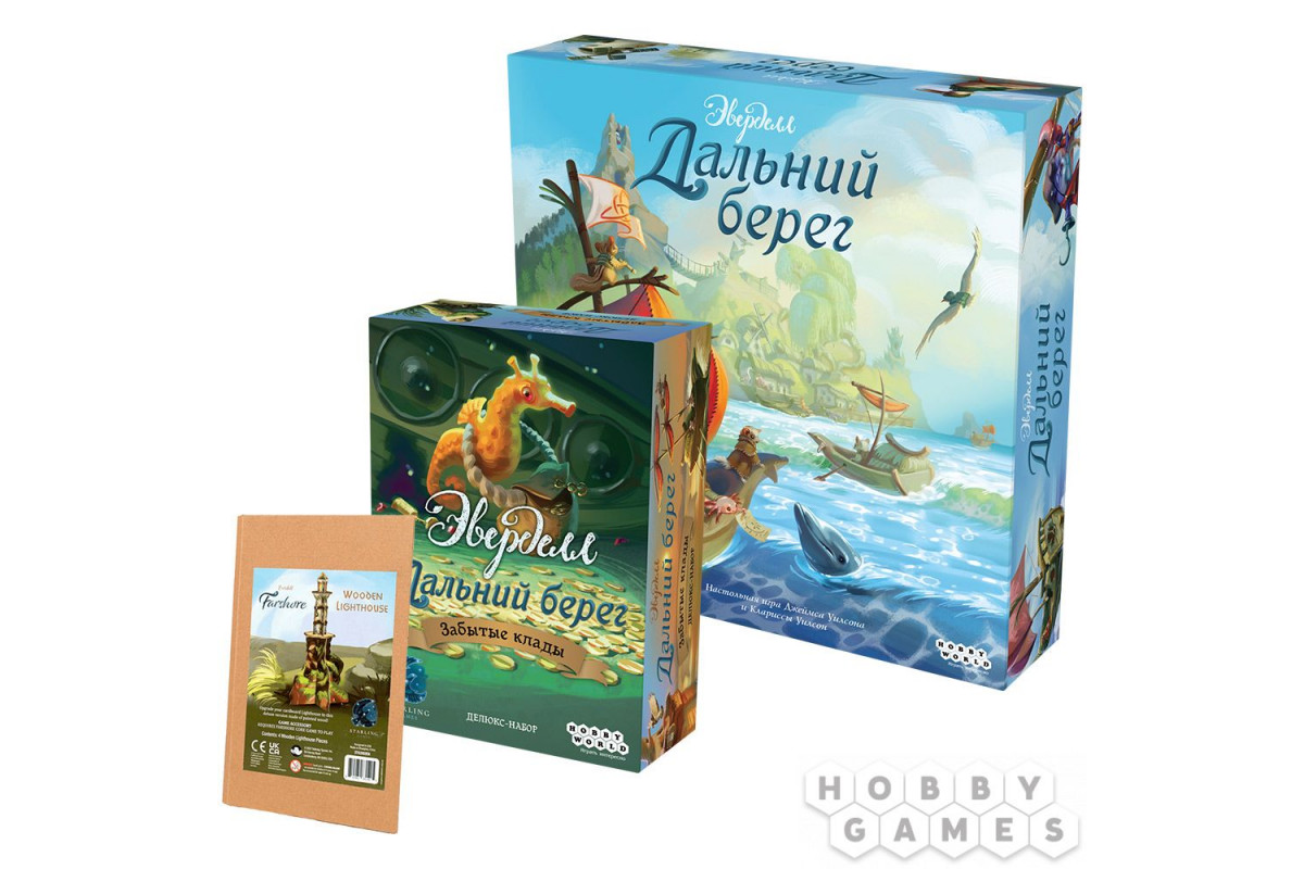 К северу от уютной долины Эверделл раскинулся Дальний берег – край отважных мореходов и затерянных сокровищ. Исследуйте его с набором, в котором вас ждут базовая игра "Эверделл: Дальний берег", дополнение "Эверделл: Дальний берег. Забытые клады" и маяк-аксессуар Everdell: Farshore. Wooden Lighthouse – и всё это со скидкой 15%. Готовы отправиться в плавание к таинственным островам, где каждый риф может скрывать несметные богатства?