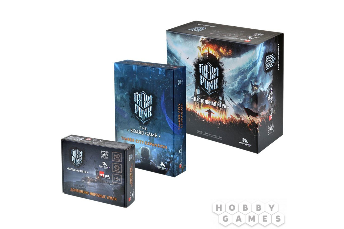 В набор входит настольная игра Frostpunk и дополнение Frostlander на русском языке, а также дополнение Timber City – со скидкой 26%.