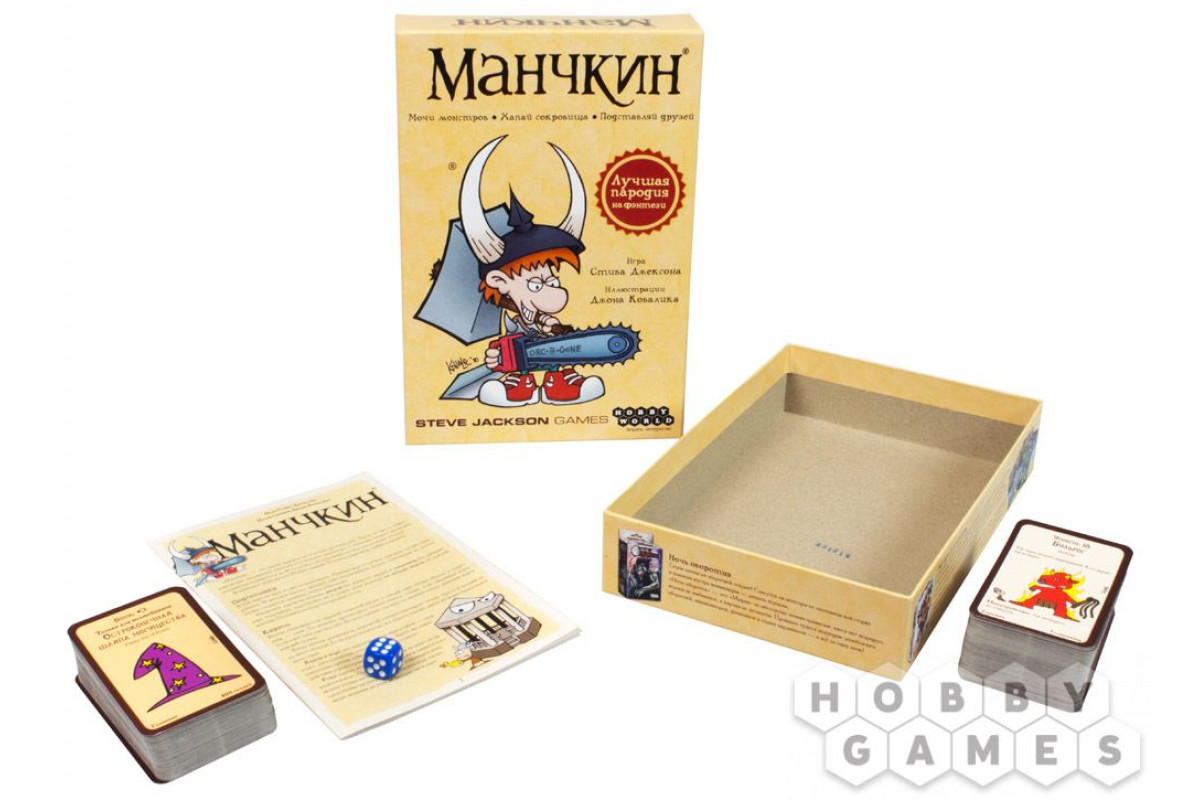 Ролевая игра по форме, пародия по содержанию. Манчкины игроков ходят по подземелью, вытаскивают на свет божий тамошних чудовищных обитателей и либо раскаиваются в этом, либо получают за победу новые уровни и сокровища. Исход каждого подобного приключения (боя, короче) зависит от того, кто с чем на бой вышел. У игрока это уровень и бонусы/штрафы от шмоток, класса, расы и проклятий. У монстра это уровень плюс карты-усилители и разовые шмотки. Откуда шмотки у монстра? В вашем бою могут принять участие и завистливые соперники: они могут помогать монстру и ослаблять вас. Поэтому, хотя в "Манчкин" и можно играть вдвоём, наберите на матч побольше народу: на руках будет больше проклятий, усилителей и зелий, которыми так легко изменить баланс сил в бою в любую сторону, и бдительные завистники не дадут никому из вас выйти в единоличные лидеры гонки к 10-му победному уровню.