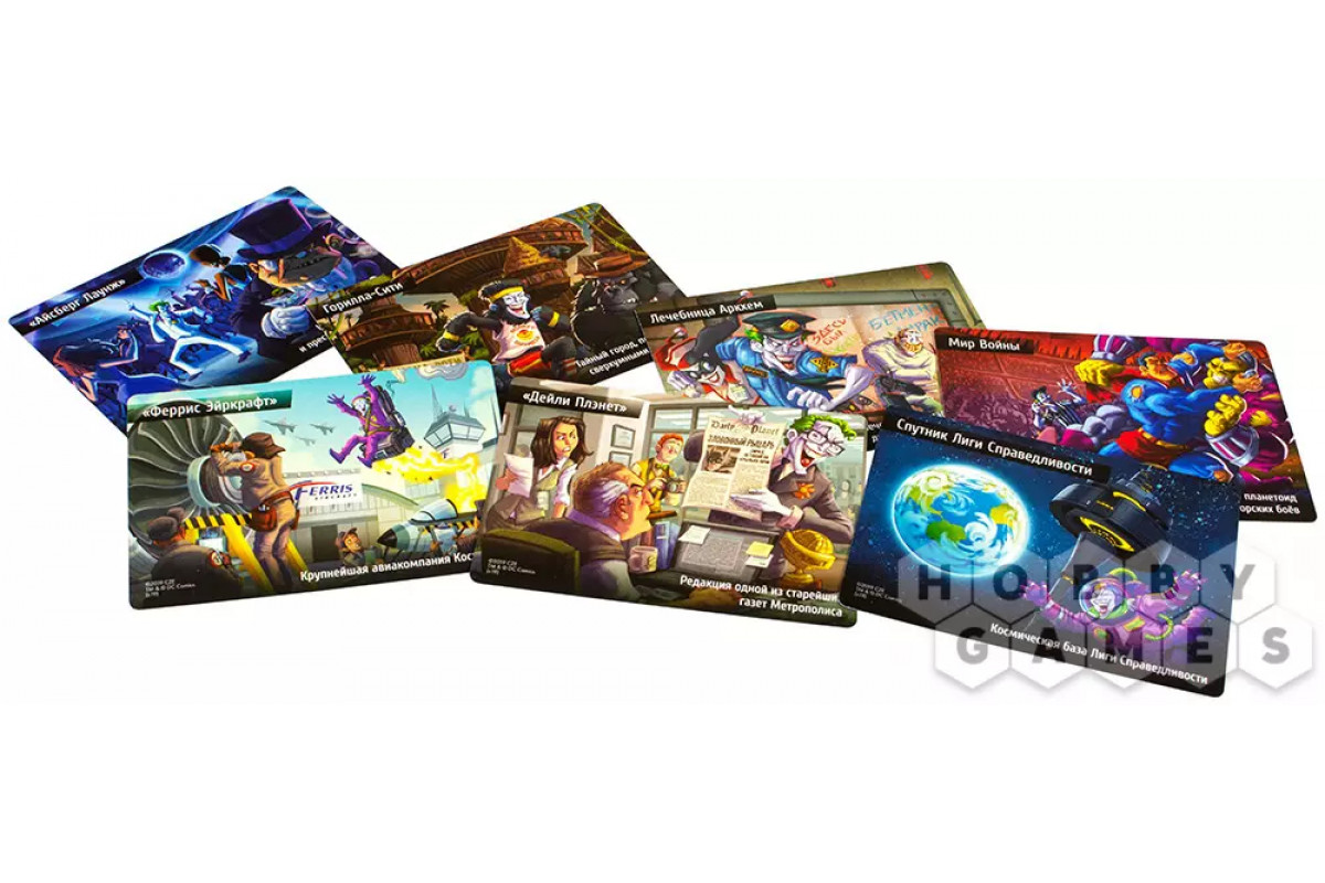 - 20 наборов по 8 карт в каждом (7 карт локаций + карта Джокера)