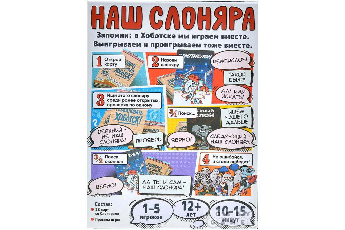 Это не просто набор карт – это ваше стадо, ваша семья. Только от вашей памяти и единства зависит, сможете ли вы вместе добиться великой цели и стать настоящими Нашими Слонярами!